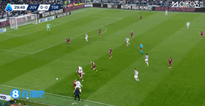 第59分钟,尤文分球右边路,小孔塞桑得球准备启动,直接带出了边线↓