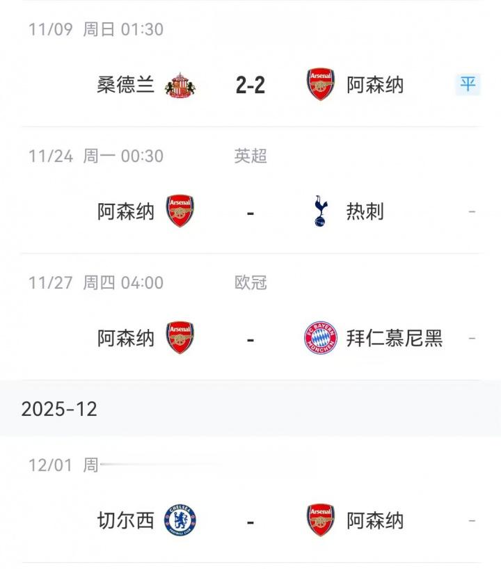 本场比赛战平后,阿森纳未来的赛程也强敌环伺。下轮联赛,他们将在主场迎战热刺,上演“北伦敦德比”,随后在欧冠中迎战拜仁。