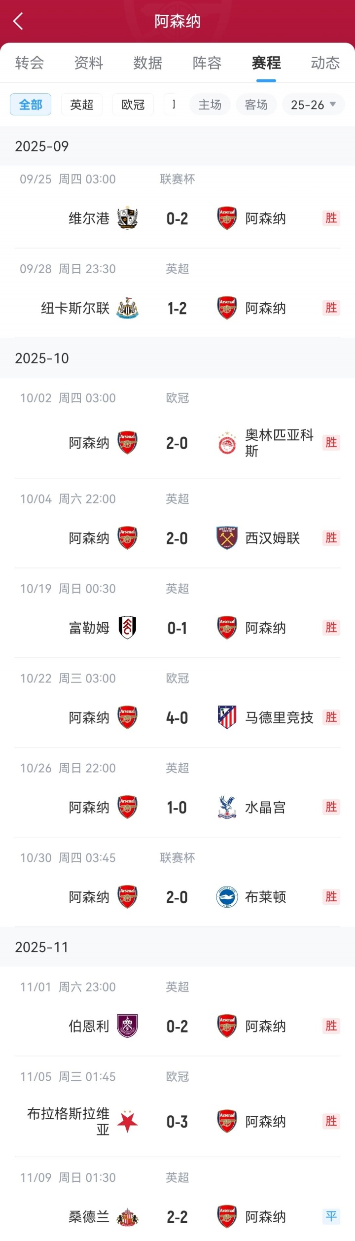 直播吧11月09日讯英超第11轮,阿森纳客场遭桑德兰2-2绝平。至此,枪手9月底至今的各赛事连续10场比赛获胜+连续8场比赛零封获胜成绩均遭到终结,无缘刷新英格兰足坛的新纪录。