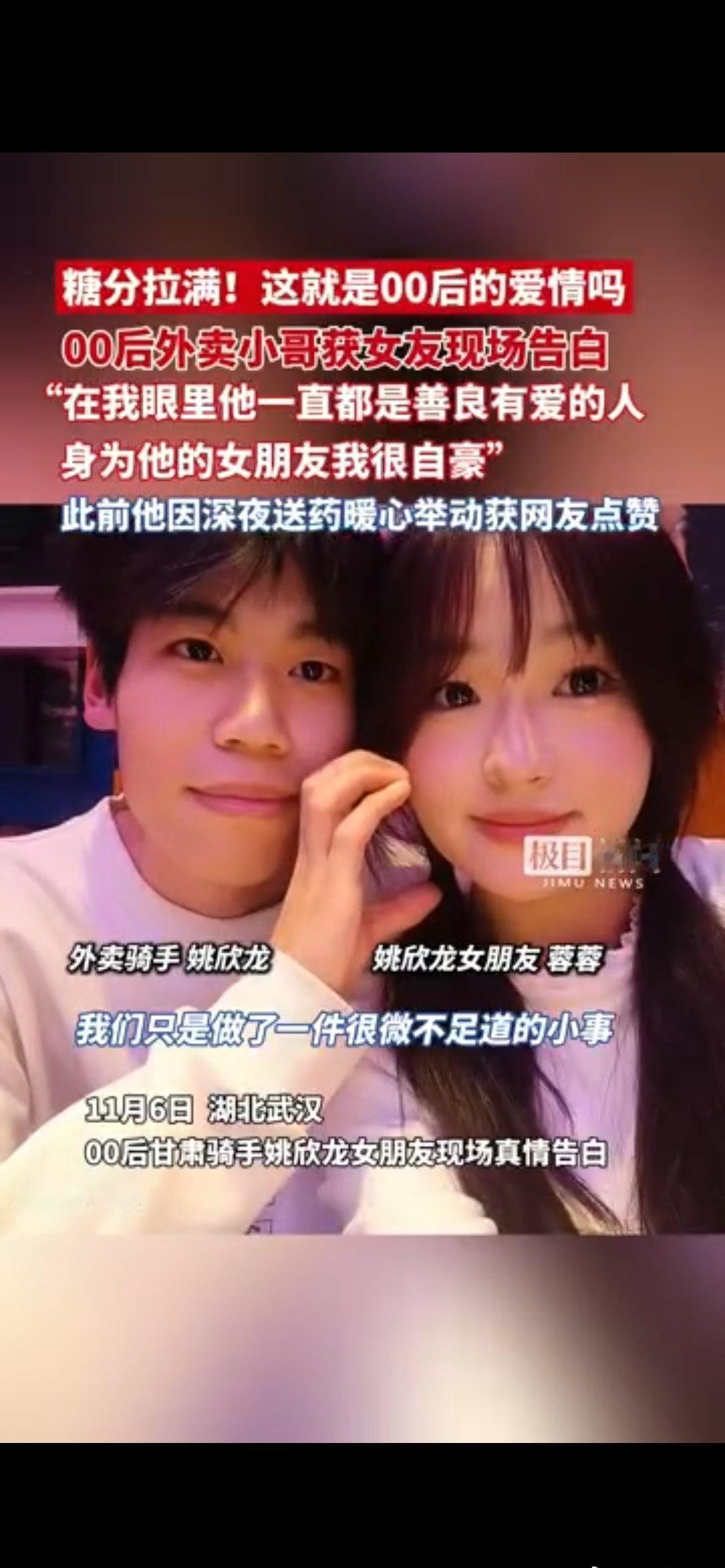 00后骑手姚欣龙的担当藏在细节里,送药两度折返看顾客安全,11月6日在湖北武汉收获女友真心,说为他自豪,爱情里的理解太动人。