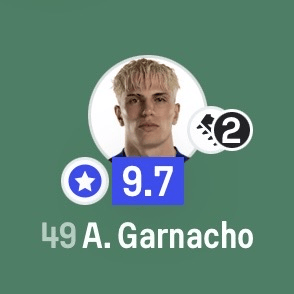 根据Sofascore的统计,这是加纳乔英超生涯首次在单场比赛中两次贡献助攻。