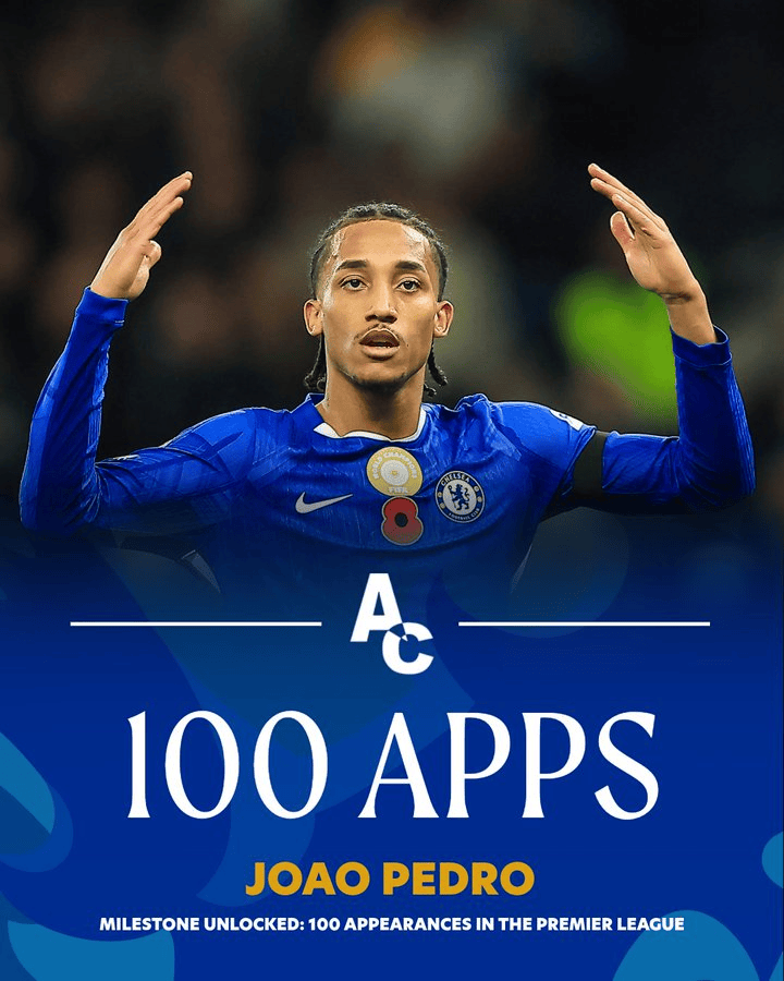 虎扑11月09日讯英超联赛,切尔西3-0完胜狼队,若昂-佩德罗迎来英超生涯百场里程碑。