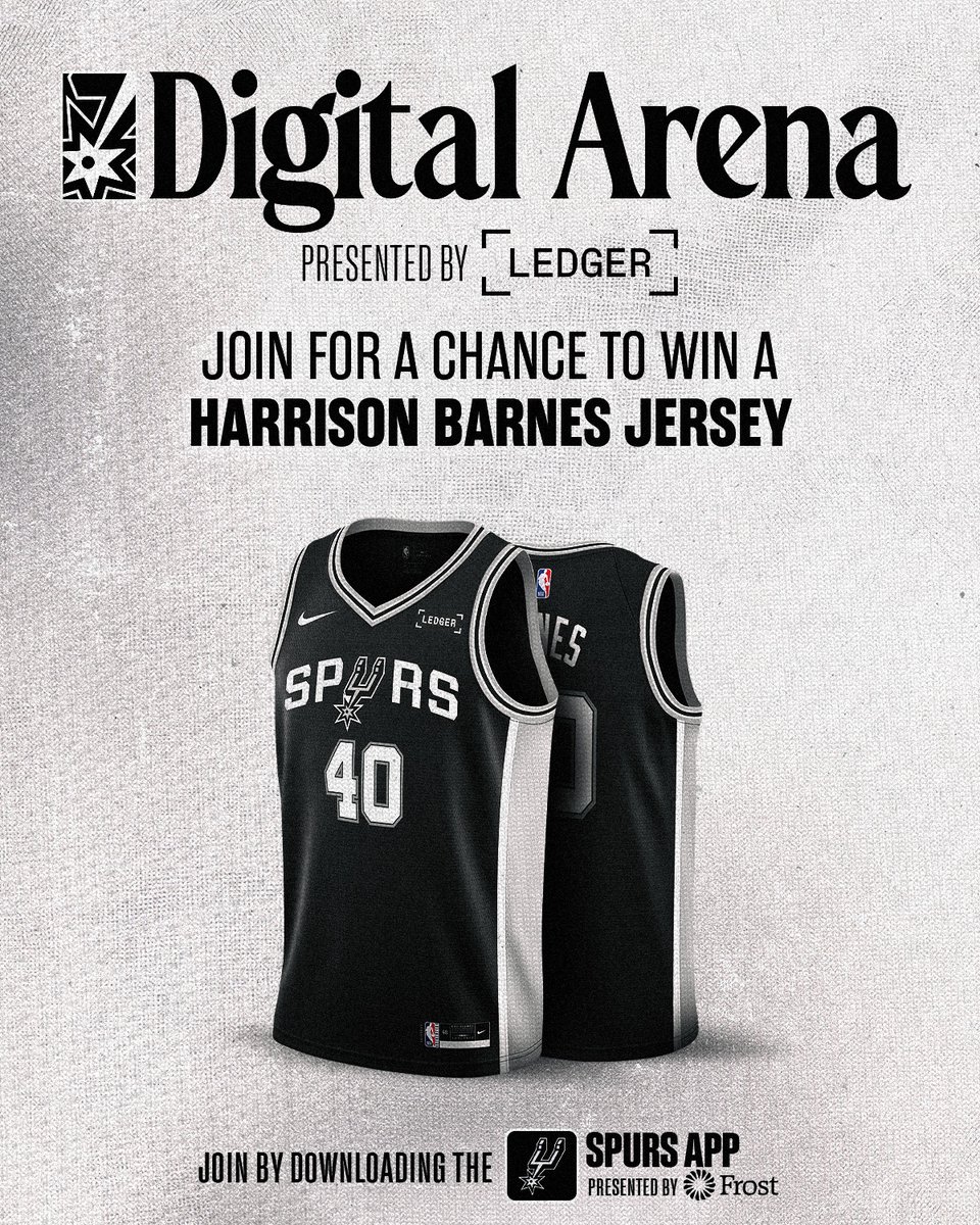 马刺官方推特报道。今晚加入数字竞技场的乐趣吧!参与即有机会赢得属于你自己的HB球衣:@Ledger|#赞助