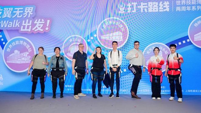 CityWalk中,世界技能组织、世赛梦想大使和博物馆联盟校等代表穿着增程动力外骨骼机器人,健步如飞。这套外骨骼也在同期举办的人工智能主题临展中闪亮登场。