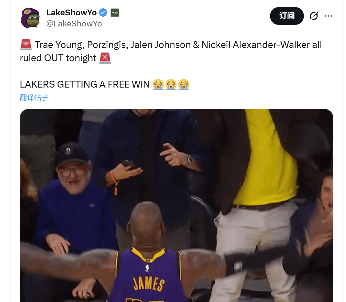 赛后,湖人自媒体LakeShowYo赛前的一条动态引起热议: