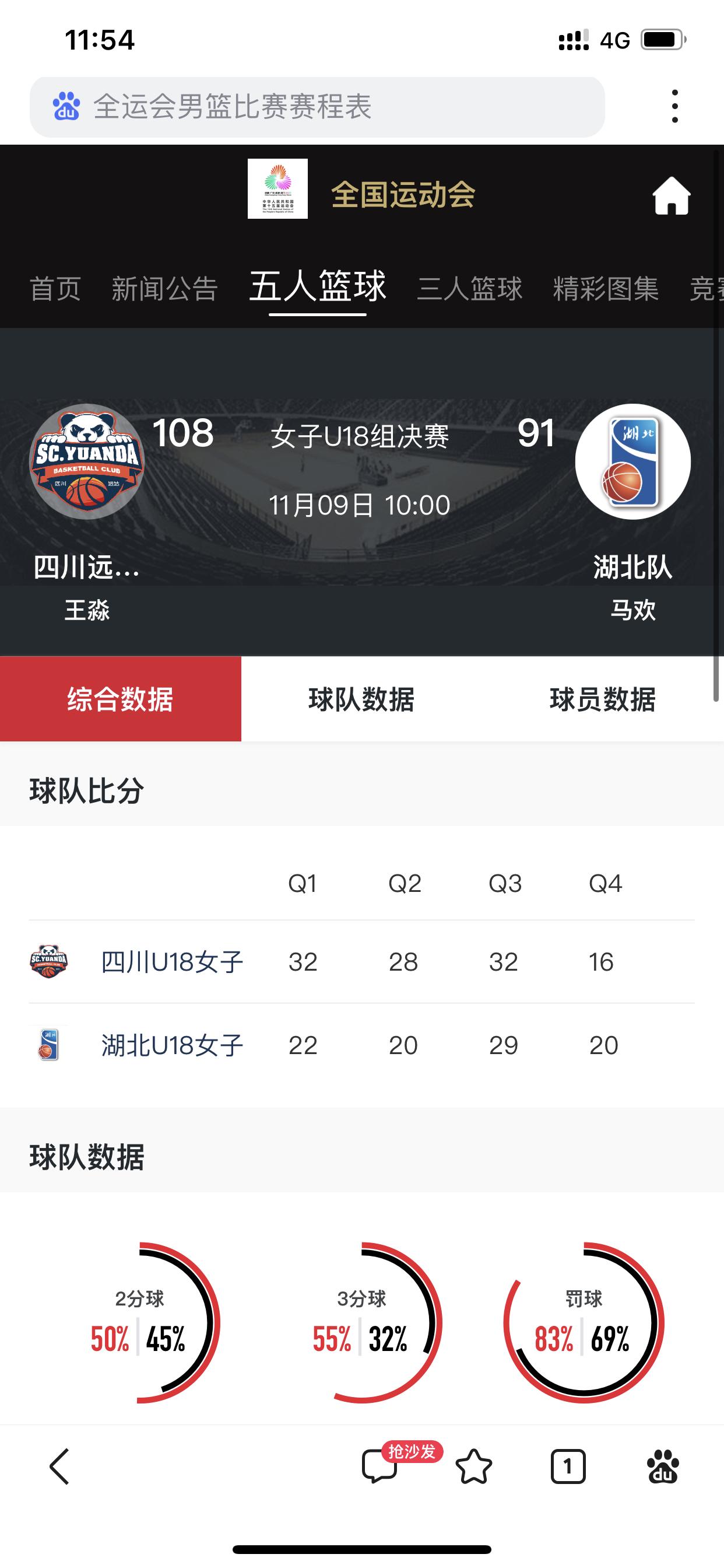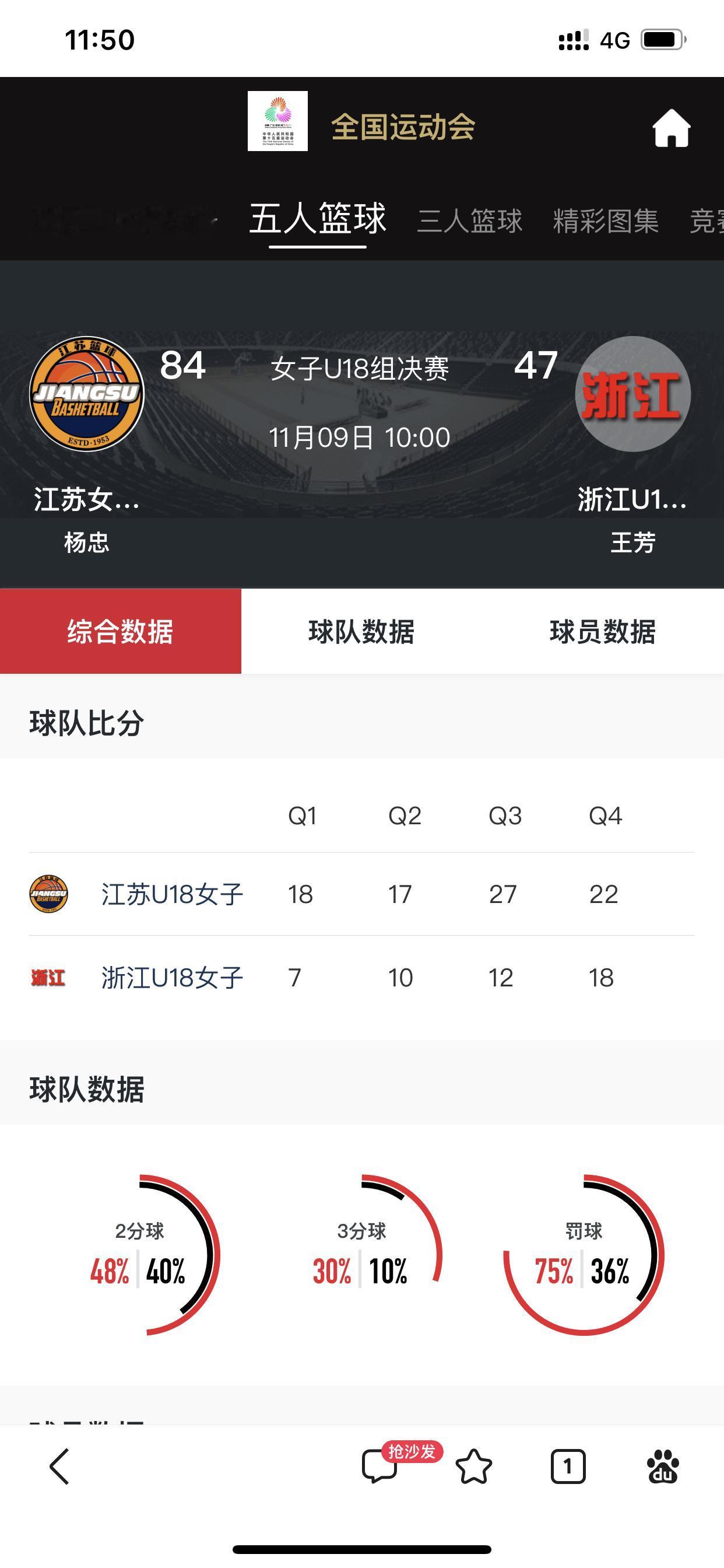全运会U18女篮八强已经决出! 辽宁U22女篮败给北京U22女篮。 U18女篮今天上午刚刚打完最后两场比赛,即江苏女篮84:47狂胜浙江女篮,四川女篮以108:91大胜湖北女篮(四分之一淘汰赛是在11月11下午16:00和晚上19:30分别进行) 最终八强确定👇 分别是三战全胜的山东U18女篮、我湖南U18女篮、江苏U18女篮 和两胜一负的河南U18女篮、四川U18女篮 以及一胜两负但小分占优的广东U18女篮 最后再加上两个最好的小组第三名,她们是福建U18女篮、湖北U18女篮。 此外,同时结束的,还有一场全运会U22女篮比赛,即辽宁U22女篮VS北京U22女篮,以54:84惨败给北京女篮。