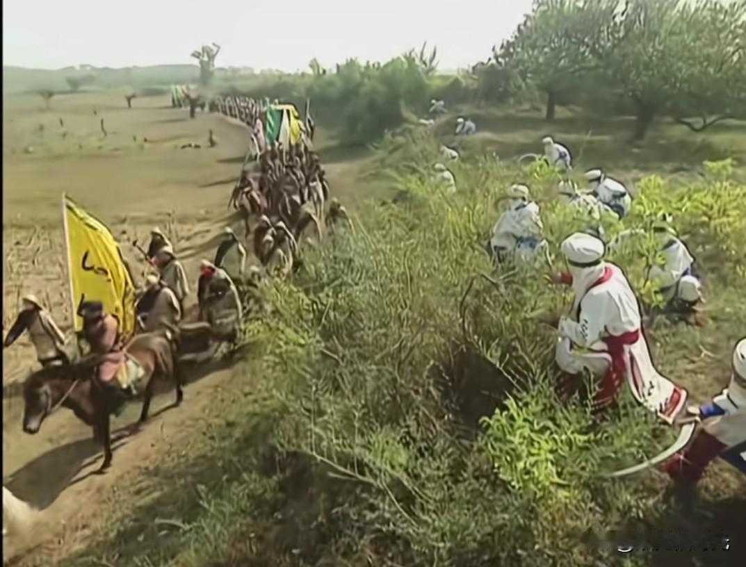我怀疑当年看这段剧情的时候是不是把脑子扔了。[捂脸] 含香被父亲送往大清和亲,蒙丹隐藏起来准备劫人,但他藏的清清楚楚,现在看好想笑。 网友的评论更搞笑: 一溜白色衣服特显眼,都埋伏到对方眼皮子底下了。 骑马的都不敢抬头,恐怕看对眼。 你们这不是埋伏,这是来参观的吧? 拉屎都不敢找的地方他们敢埋伏。 …… 也有网友说这样才能收在一个镜头里,反正不管是技术原因还是地势因素,现在看起来就是很想笑,尤其是网友的评论,大半夜瞌睡都笑没了。[大笑]
