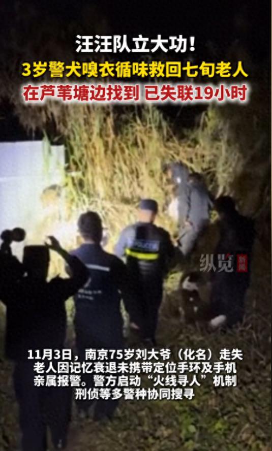 11月4日凌晨,南京警方依托“火线寻人”机制,多警种协同作战,利用警犬追踪技术,成功寻回在郊野走失19小时的75岁老人。在此次救援中,警犬凭借敏锐的嗅觉与精准的追踪能力,成为现场不可或缺的“特殊力量”。