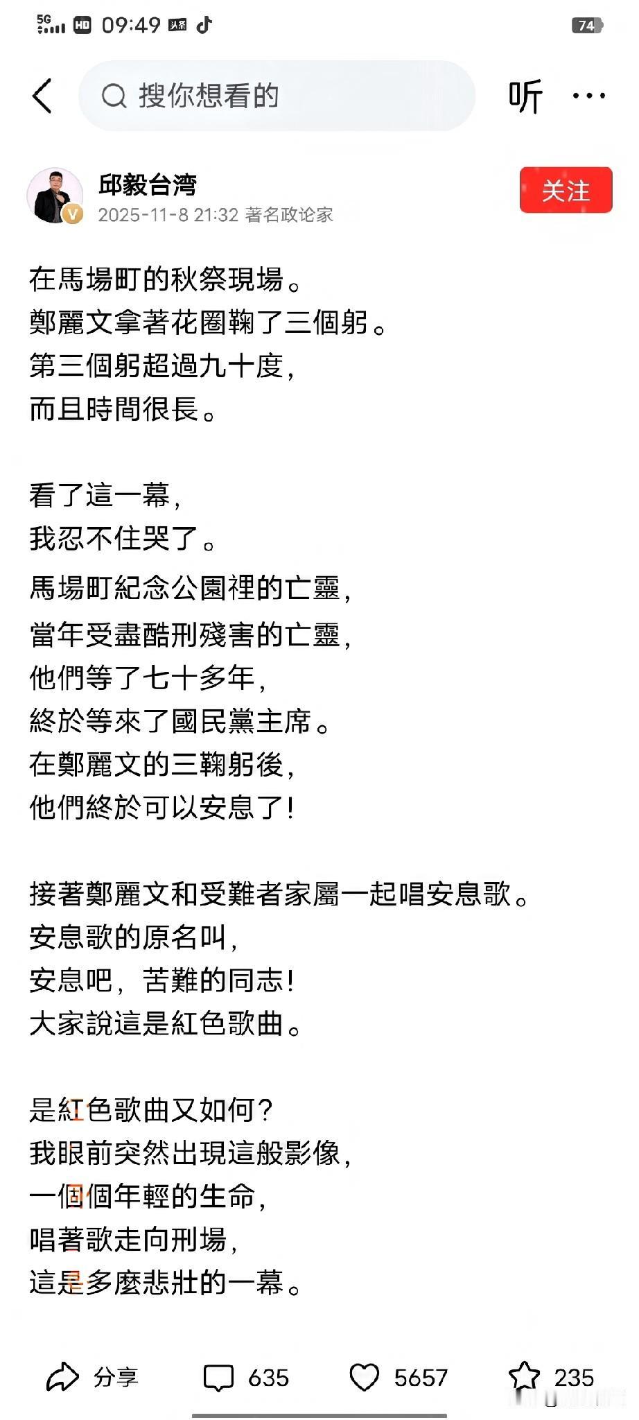 邱毅哭了! 我认为邱毅的眼泪,表面是为历史英雄而流,但更深层看,是在哭一种正在消逝的精神认同。 当郑丽文祭拜吴石将军——这位为两岸和平付出生命的先烈,邱毅的眼泪本质上是对两岸共同历史记忆断裂的痛心。 他哭的不是一个人,而是那个曾经血脉相连、如今却渐行渐远的民族共同体。 这份眼泪背后,是看到某些人正在遗忘我们同根同源的身份,是痛心于家国情怀被政治算计所稀释。 它映照出每个期盼团圆的人内心最深的焦虑:当我们共同的历史被改写,共同的记忆被抹去,连接两岸的根脉还能维系多久? 这滴泪,是为守护民族共同体不被割裂而流的。