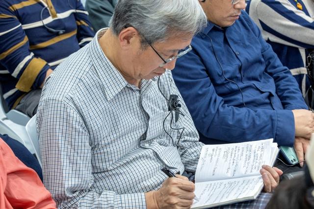 5.佩戴同传耳机,这位听众边听边思,笔记本上已写满密密麻麻的要点与心得。