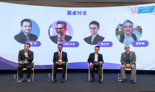 4.郑宇主持圆桌环节。四位嘉宾聚焦全球南方多元化现代化路径,探讨以南南合作推动互惠发展,并展望更加平等的全球治理新秩序。
