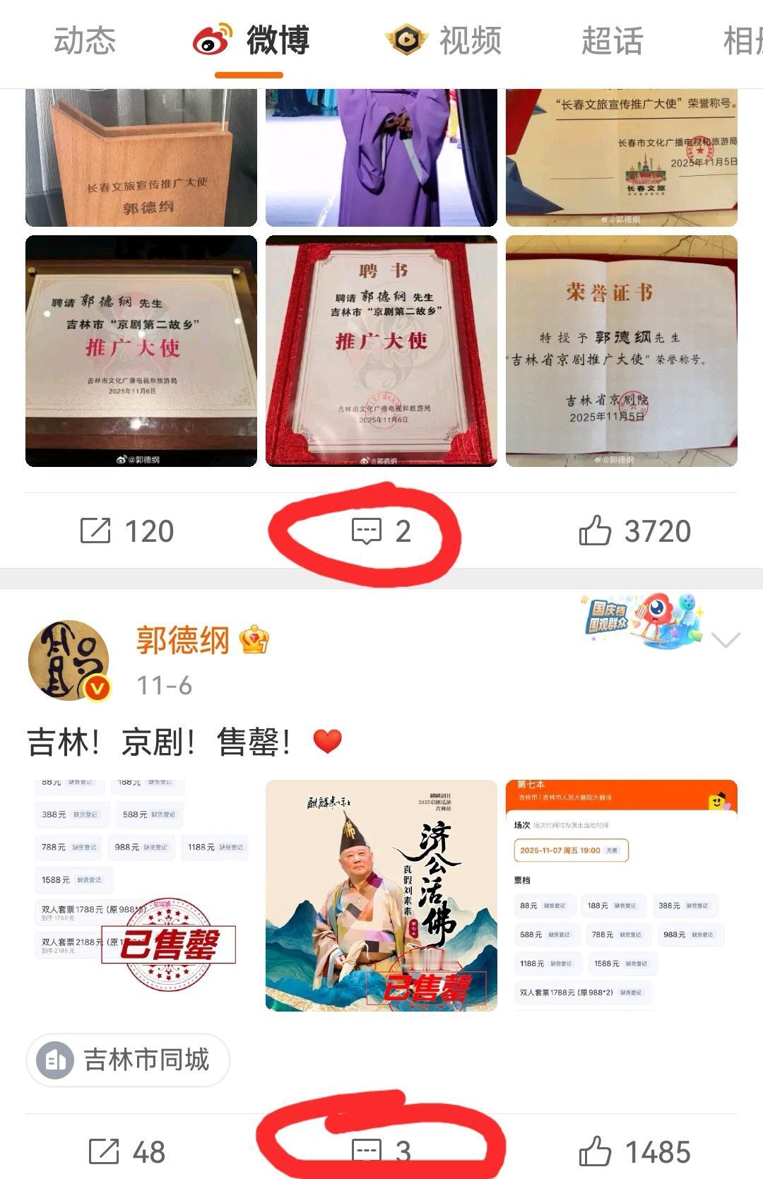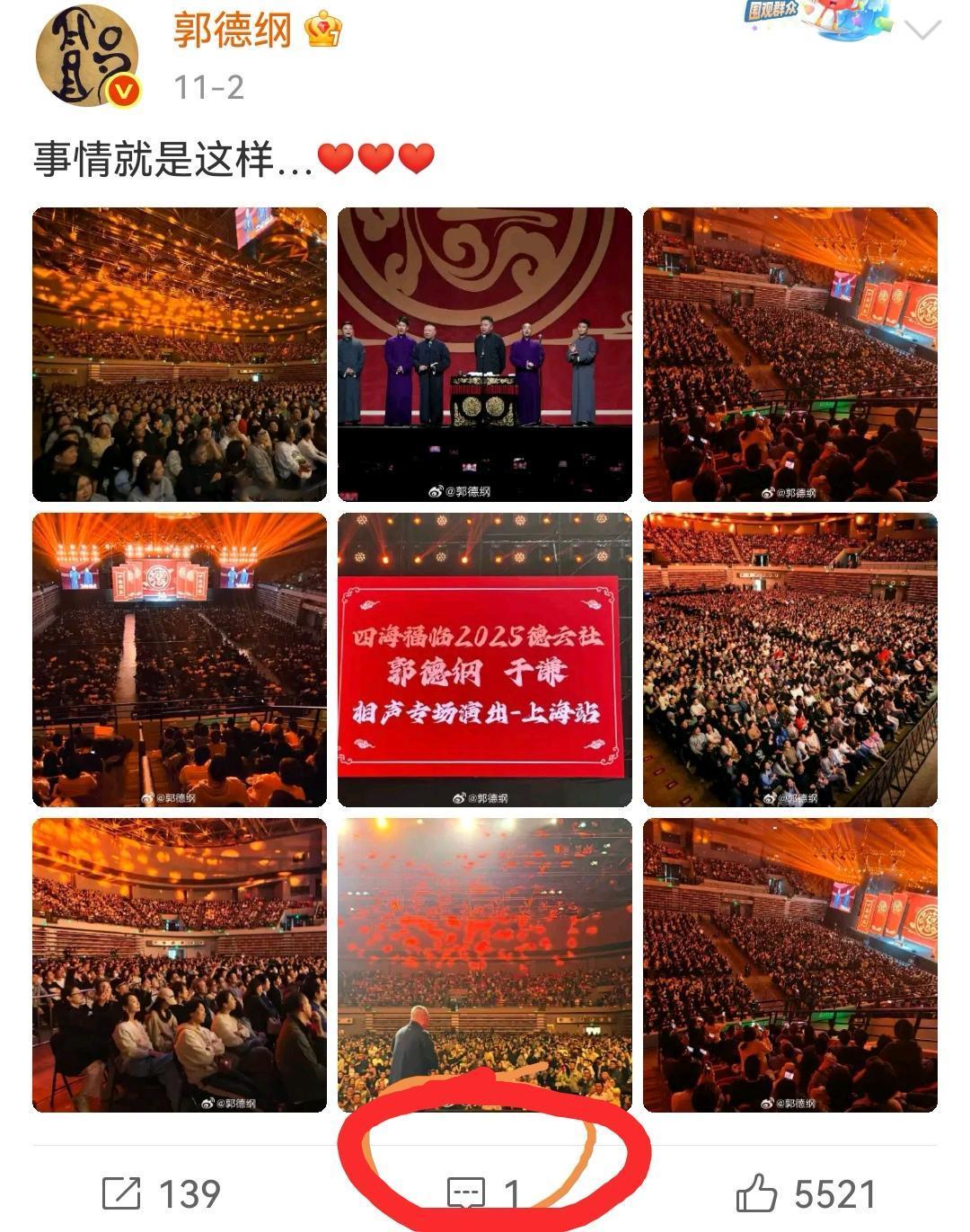 曹云金不关评论区。郭德纲要学吗? 在新书《您好,请听我说》线上销售的当晚直播中,对于朋友和粉丝提问如何面对善意或恶意的批评时,曹云金明确表示:“我所有的社交媒体账号都没有关闭评论,都可以留言,未来也会始终向所有人敞开”,以此证明自己面对批评的态度。 曹云金是这么说,也的确是这么做的。那么不禁让我想起他的一位同行——郭德纲先生。郭先生的V博设置了评论权限,近些年每条博文评论基本都是个位数,能评论的人应该是少之又少。 郭德纲的V博评论不知何时设置的限制,那么何时取消评论限制能否尽快提上日程?能否向曹云金学习一下呢?如果郭先生还没有取消评论限制的意向,那么你担心什么呢?