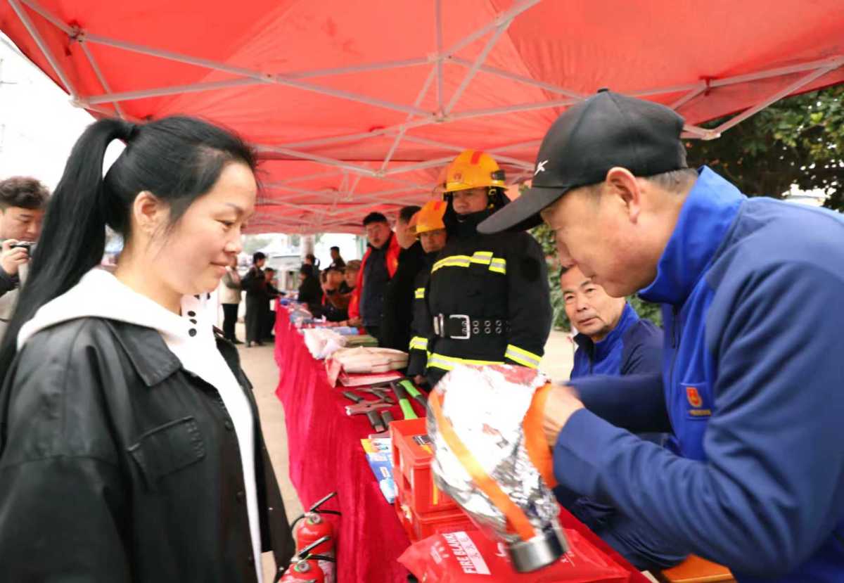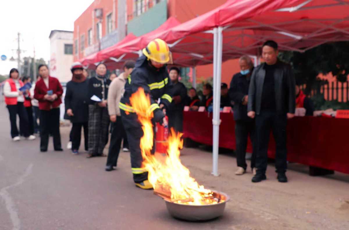 在综合服务平台前,消防员向过往群众讲解了冬季防火知识,以及家用电器使用、电动车充电等知识,灭火器和灭火毯的正确使用方法,并让群众现场进行了灭火实操。一位商贩操作灭火器后感慨地说:“出现了火情,用灭火器,但究竟咋用,咱也没试过。今天,看了消防员的讲解,亲自操作后才明白,使用灭火器还有这么多窍门哩!”