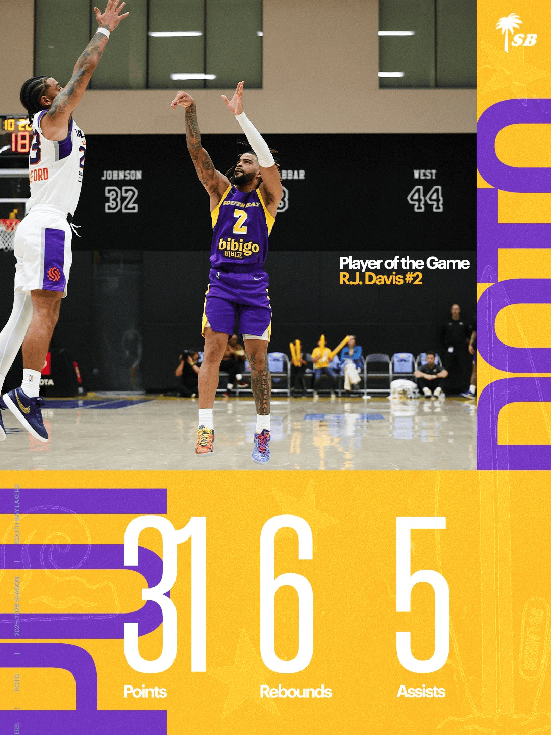 虎扑11月09日讯今日G联赛的赛季揭幕战已经结束。南湾湖人队以144-105大胜山谷太阳队。