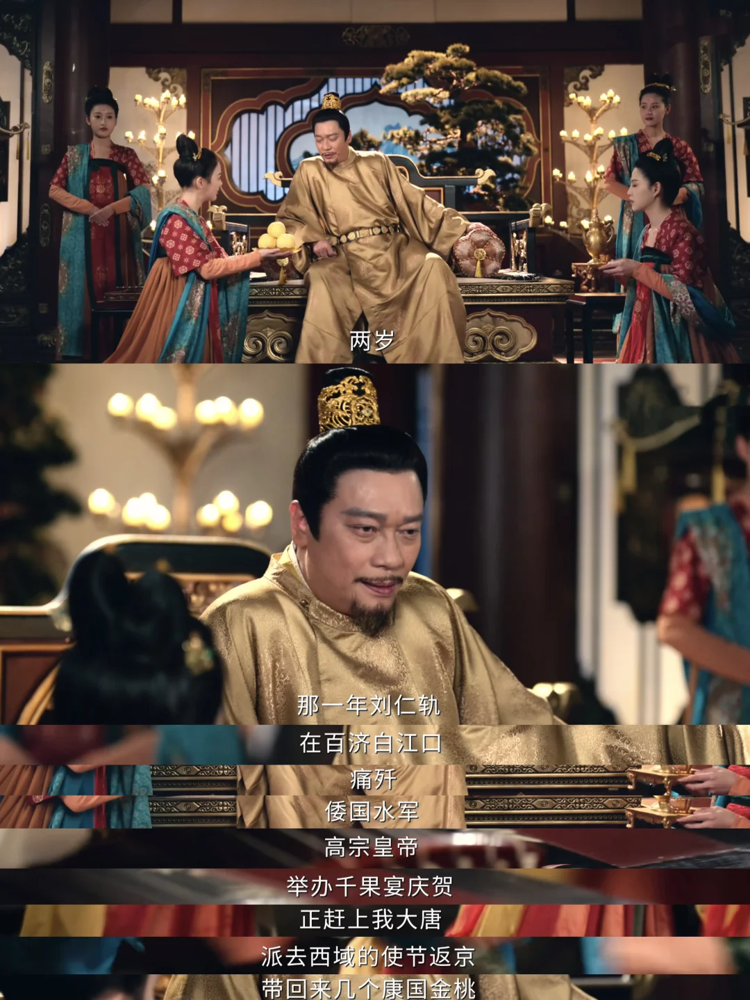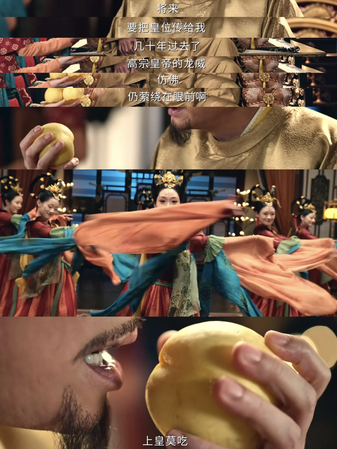 金桃的第二层,他吃的是当年李治属意传位于我的合法性故事(他们家那极其复杂曲折的权力世系啊),这金桃形同玉玺