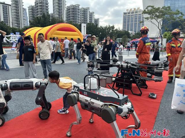 广场上设置的消防互动体验区同样人气爆棚,让市民得以零距离接触消防前沿装备与技术。