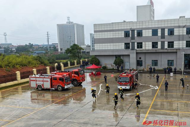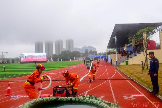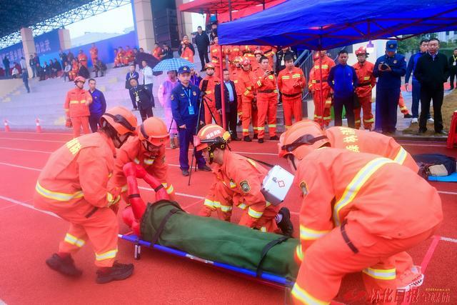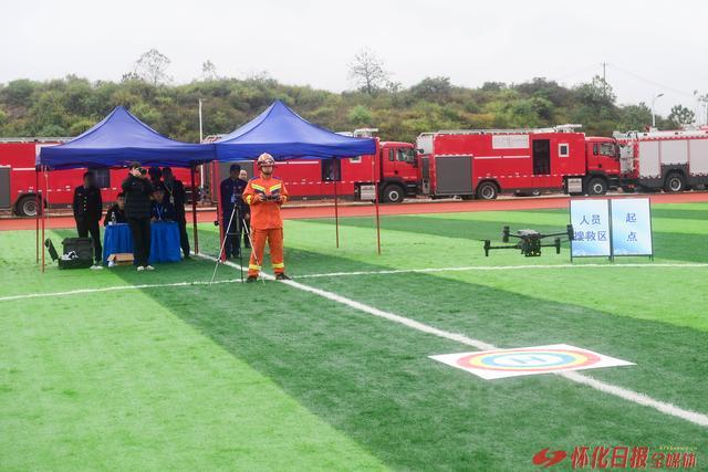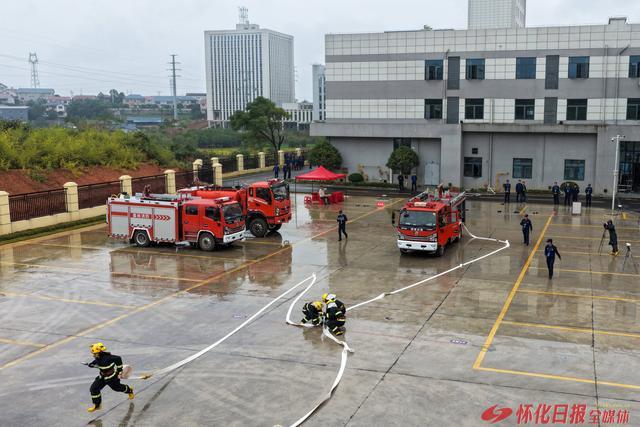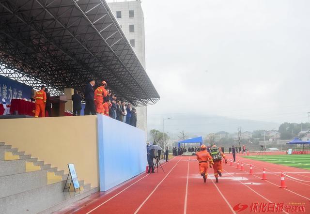 (湖南省第三届乡镇应急能力比武在怀化市区域应急救援中心燃情开赛。)