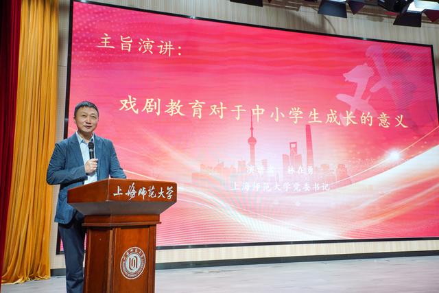 陆军以及儿童剧作家崔志颖、上海师范大学党委书记林在勇依次发表题为《同学,你写的是戏剧剧本吗?》《把最宝贵的东西给予儿童》《戏剧教育对于中小学生成长的意义》的演讲。林在勇表示,戏剧教育突破了传统学科教学的窠臼,提升了学子们认识真实生活,解决问题的能力,还能够培养出具有同理心和共情力的人才。