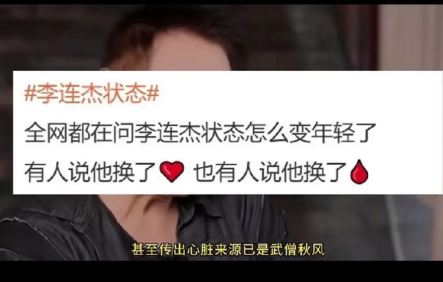 李连杰确实比前几年出现的时候,年轻了太多。 很多人在网上怀疑他变年轻,是换了秋天风的[心]和X 为了打消网民的疑问,他还脱了上衣,拍视频,身上没有任何动过手术的刀疤。 还有一个原因就是,现在的照片和视频开了美颜。 美颜功能打开,瞬间会年轻几十岁。