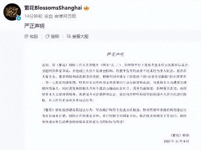 《繁花》剧组强烈谴责其违法行为,坚决维护所有主创成员的权益。针对程骏年实施的所有违法行为及其损害后果,剧组正在持续取证中,且已经提交给国家司法、执法机关和相关主管部门。剧组全体成员相信法律会给出最真实和最有力的回应与判决!