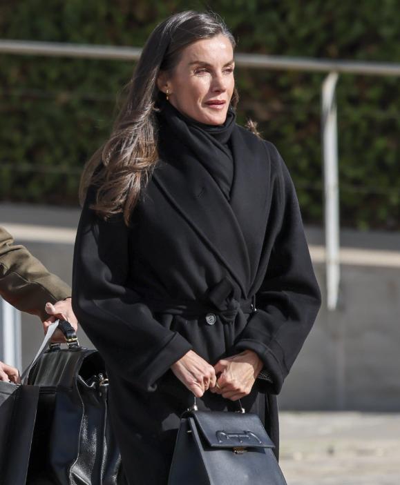 西班牙王后启程成都,一身全黑造型朴实不失气场!11月9日莱蒂齐亚王后陪同国王费利
