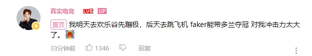 直播吧11月9日讯此前曾在直播中扬言Doran如果夺冠直接从25楼跳下的B站UP“真实电竞”在最新一条动态下方留言:我明天去欢乐谷先蹦极,后天去跳飞机faker能带多兰夺冠对我冲击力太大了。