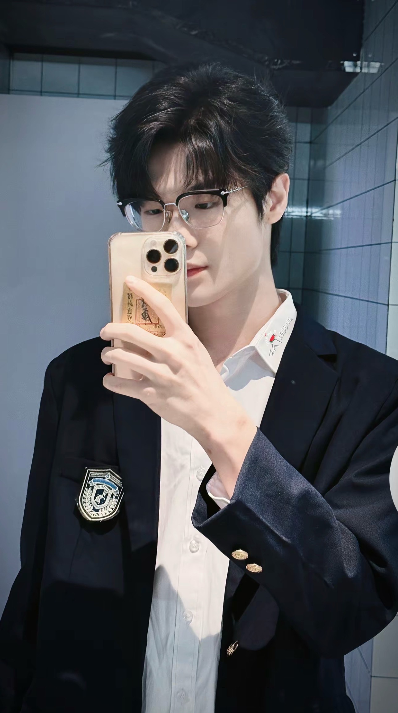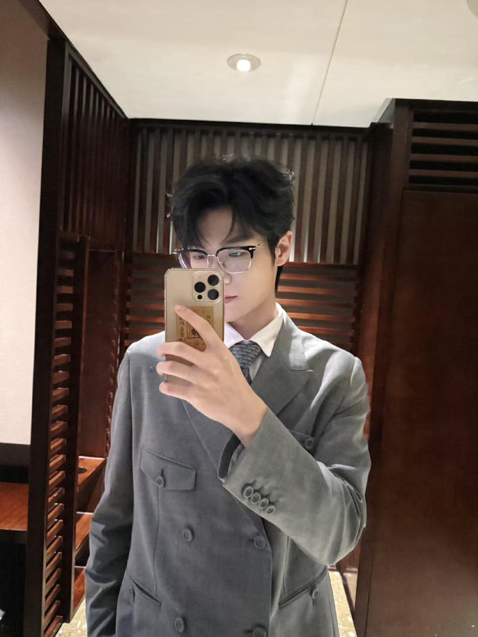 33蓝色衬衣对镜拍这颜值+骨相,是镜头追着跑的程度吧!