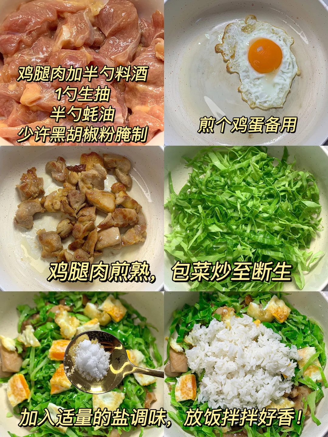 分享巨好吃的[包菜炒饭] 这一顿搭配好香呀~ 吃完饱腹感很强,蛋白碳水都有了! 简单易做,姐妹们快来试试!! [彩虹R]食材:包菜 鸡蛋 米饭 [种草R]做法:如图所示~ 减肥减脂吃这些 一人食吃什么 自制花样炒饭 美食日常 低卡低脂 健康减肥 笔记灵感