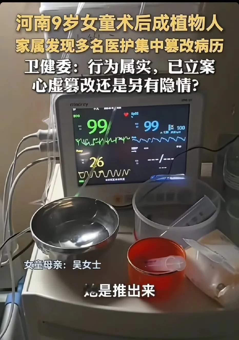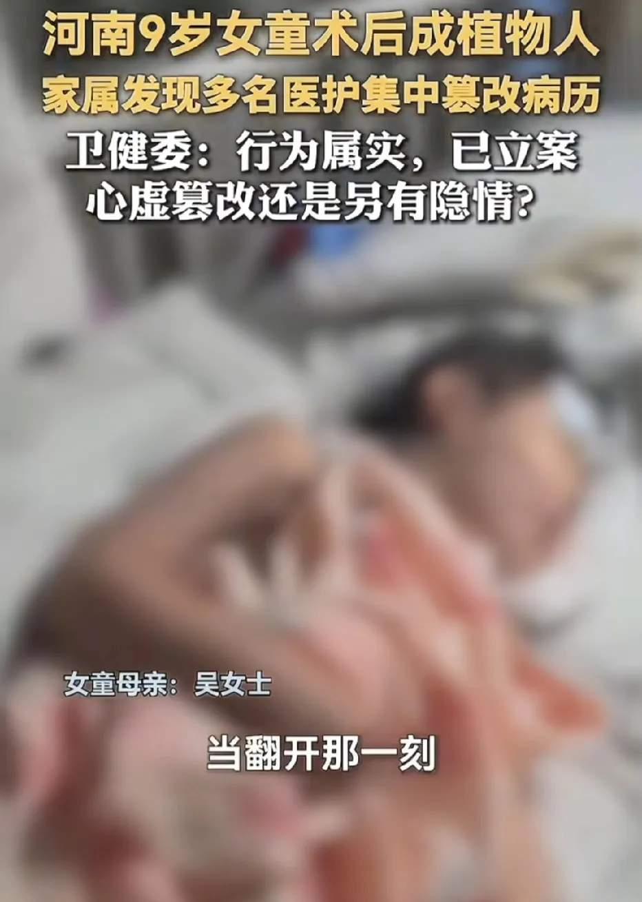河南郑州,9岁女童因血管畸形去某医院治疗,术后却成了植物人。医院起初刻意隐瞒病情,直到家属察觉异常追问,才告知孩子已醒不过来。更让家属崩溃的是,他们发现医院篡改病历、拆除监控,试图掩盖真相。 这起事件令人震惊,也引发了公众对医疗行业诚信和责任的关注。以下是一些关键点和建议: 事件概述: 地点:河南郑州 受害者:9岁女童,因血管畸形接受治疗 结果:手术后成为植物人 医院行为:最初隐瞒病情,直到家属察觉异常追问才透露情况 更令人担忧的是:医院篡改病历、拆除监控,试图掩盖真相 可能的法律和责任: 医疗过失:如果手术或护理存在疏忽,医院可能承担法律责任 违法行为:篡改病历和拆除监控属于违法行为,涉嫌伪造证据 家属权益:应通过法律途径维护受害者权益,追究相关责任人责任 建议: 家属应及时向当地卫生健康部门或医疗管理部门举报,要求进行调查 可以委托律师,依法追究医院责任,争取合理赔偿 保留所有相关证据,包括医疗文件、监控录像等 关注事件后续报道,推动相关部门加强对医疗机构的监管 公众关注: 此事件突显了部分医疗机构存在的诚信缺失问题,也提醒公众在接受医疗服务时,注意索取和保存相关医疗记录,必要时寻求法律帮助。 希望相关部门能够依法严惩不法行为,还受害者一个公正的结果。同时,也呼吁加强对医疗行业的监管,确保患者权益得到充分保障。