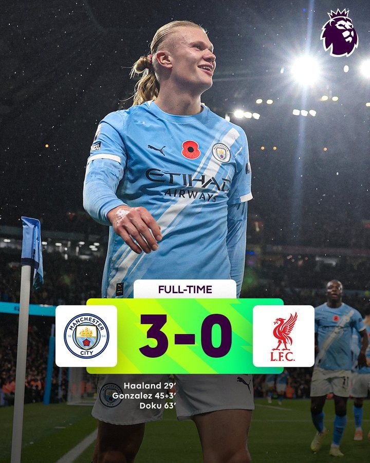 曼城终结对利物浦连续4场不胜,此前11次交锋仅取得2胜