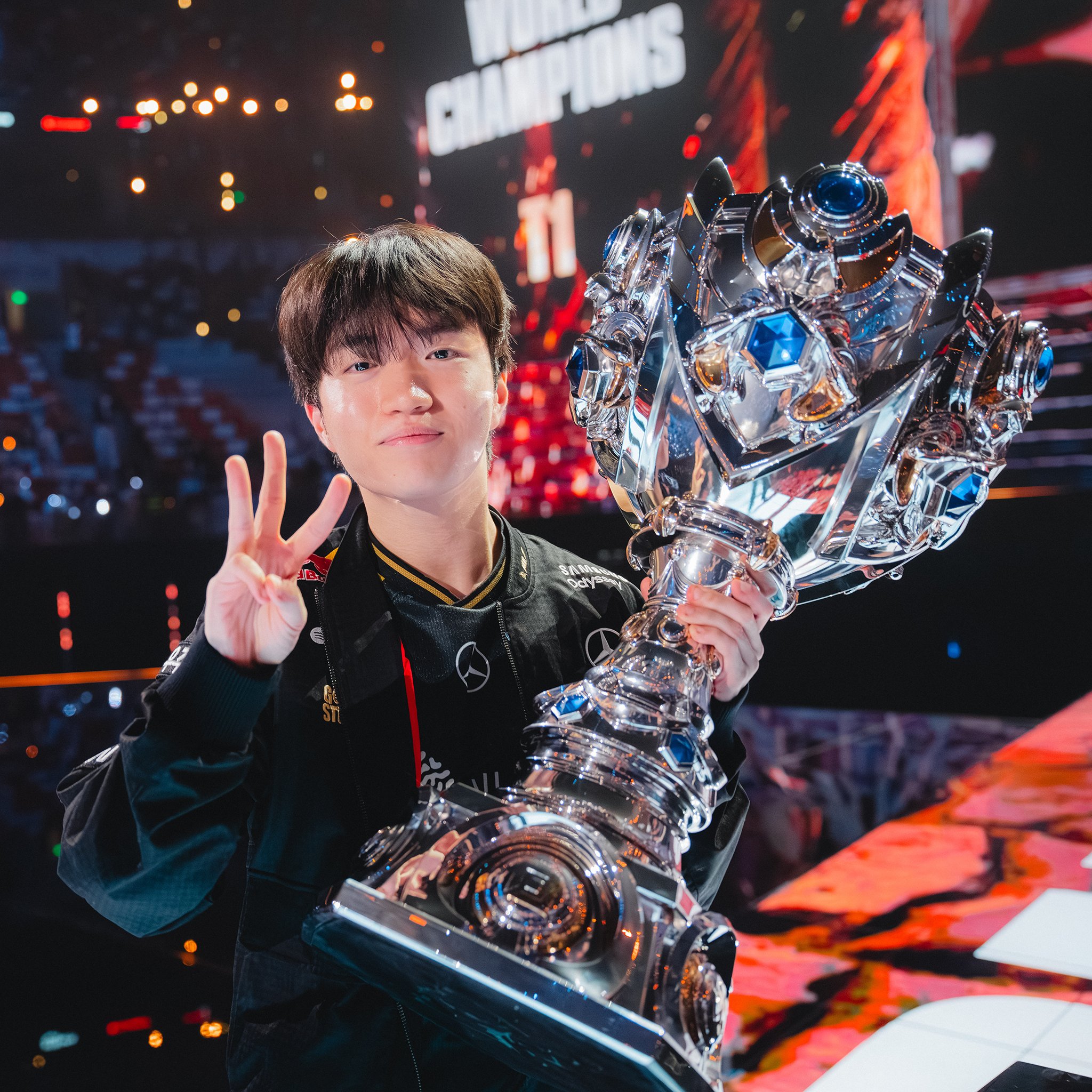 三冠加身!LOL官推晒Keria捧杯照并配文:辅助位的GOAT