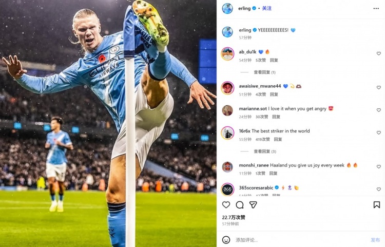 他也在赛后通过社媒晒出自己飞踢角旗杆的庆祝照,并配文:“YEEEEEEEEEES!”