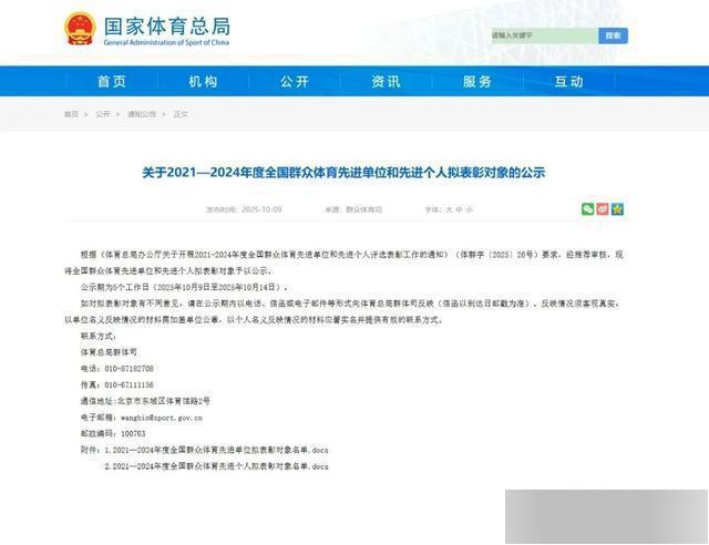 作为群众体育领域的重要表彰