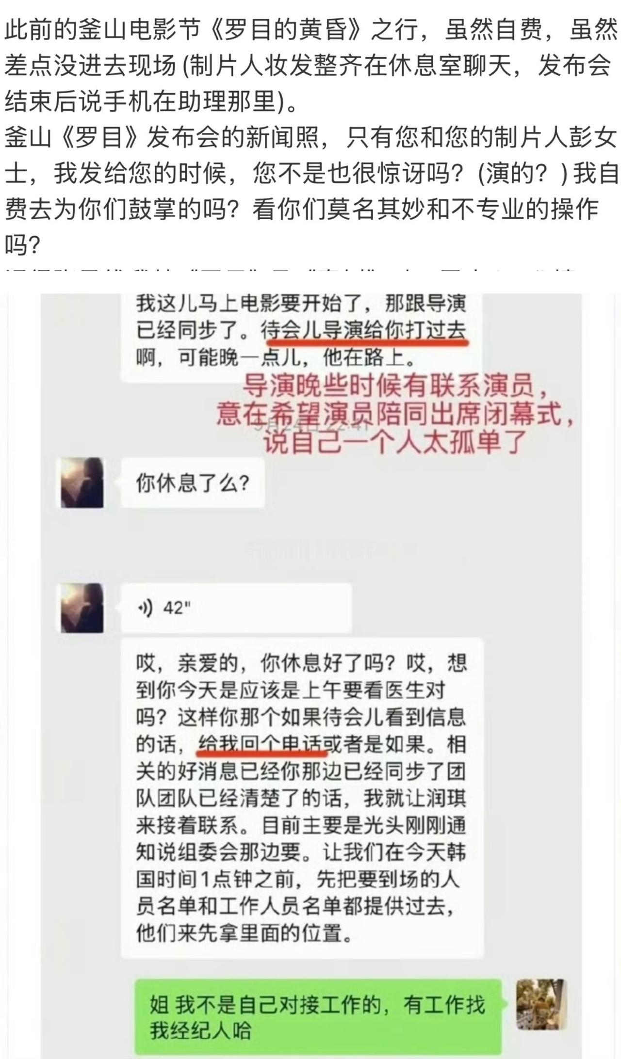 聊天记录真的自己锤自己,本来偏向白百何的舆论逐渐偏移。 从聊天记录看里看,釜山电影节,剧组和白百何沟通,她说去找她的团队,东京电电影节这次,剧组找的她的团队,她又说为什么不和她本人沟通。 剧组怎么做都会被她批评,而且男演员和导演被围攻了几天了,她才出来说是和制片方的矛盾,她这个性格,职场上谁不避而远之啊,想要奖就直说嘛,何必别别扭扭到处扯理? 说晚上8:20剧组要她回国,结果这条最重要的证据锤拿不出来。白百何是真的硬生生把风向转变,昨天第一时间看到时,评论里还都是粉丝控评,没想到啊翻车这么快,只能说白百何一方低估了现在的网友。 白百何方还发文说体面收场为好,又是暗箱运作,又是抢她影后各种阴谋论网曝人家的好几天,到底是谁不体面啊。 如果是闭幕式她想参加也直接说自己想参加,但制片方非不让白参加可以说排挤她,但是没得奖没邀请顶多只能算做事不周全,可惜208都觉得自己高高在上,别人就得千请万请才行。