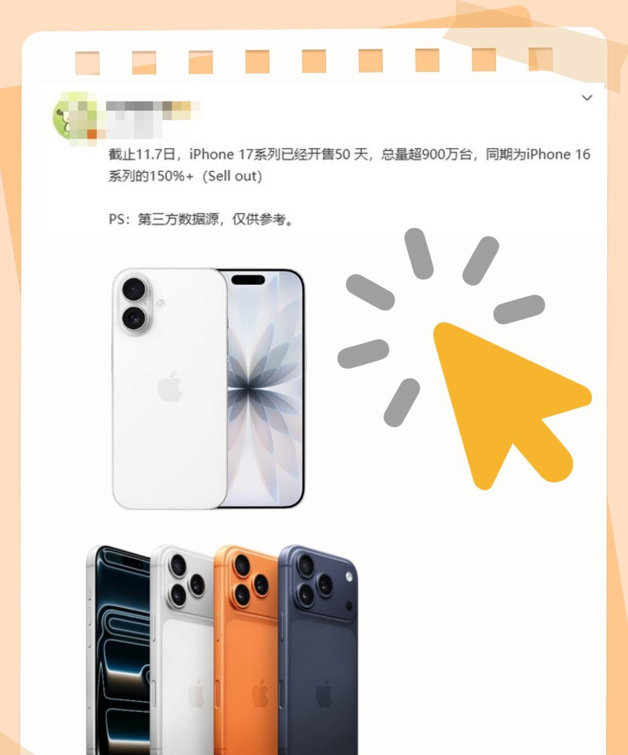 真不知道其他品牌怎么敢跳出来喊“卖爆了”,博主透露iPhone 17系列开售50天,就卖出900万台,相比去年同期的iPhone 16系列增幅达到150%。而且这还是在国内用不了苹果AI的情况下取得的成绩,不敢想象如果后面上了AppleInltelligence,销量会有多猛!!!