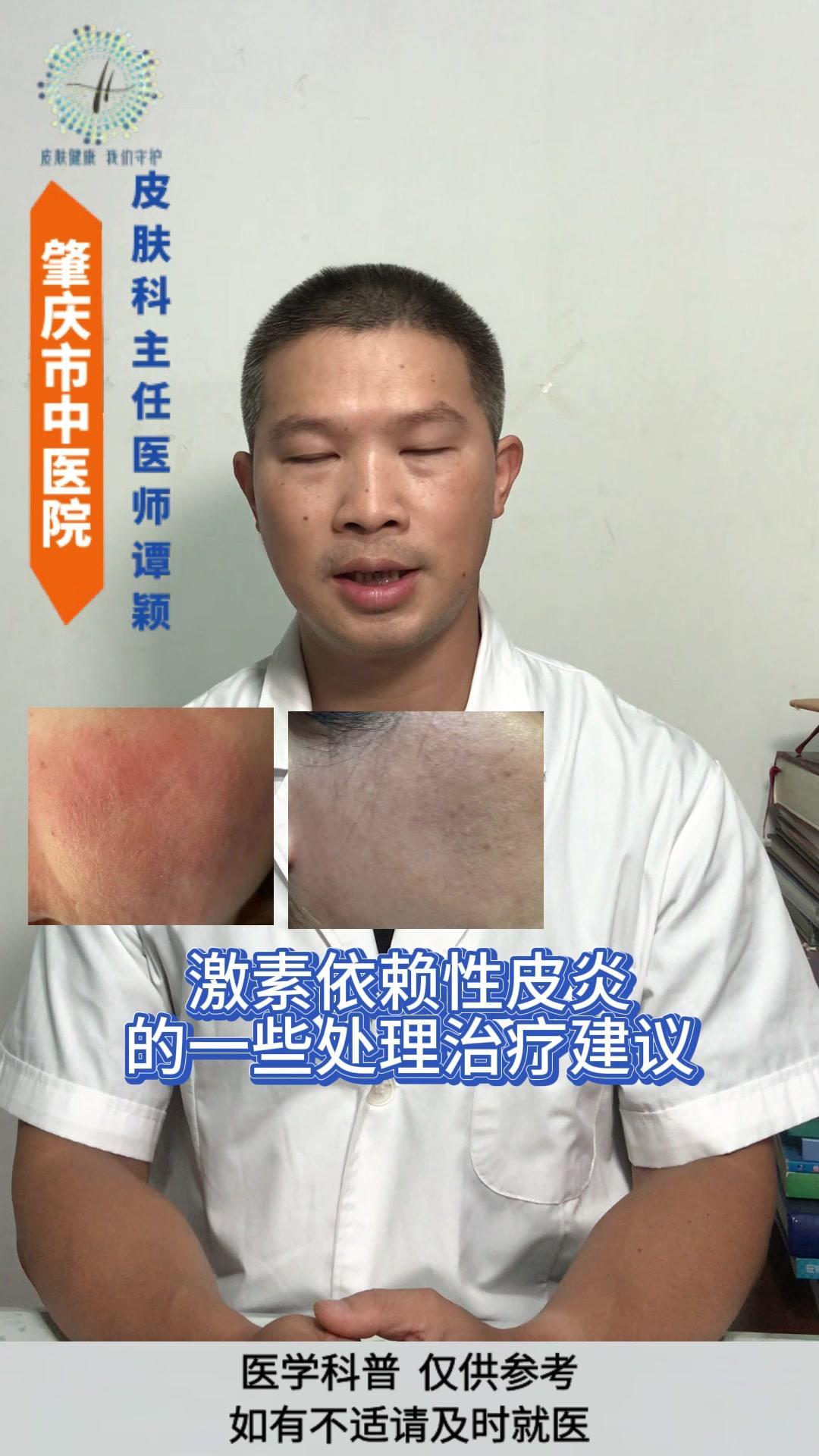 💊激素依赖性皮炎(简称:激素皮炎)是由于皮肤角质层受到严重的影响,变薄,皮肤屏障保护功能异常等因素所导致。 💊治疗: 1️⃣停止不当使用激素药物 如果担心骤然的停药会导致皮疹严重反弹,可以在医生的指导下逐步减少用药的频率,或者换用一些低效价的激素药膏来进行替代,逐渐过渡,这个替代的过程可能需要数周。 2️⃣适当的皮肤护理 可以用一些温和的洗衣液来清洁皮肤,避免使用含有刺激性的物质,避免使用各类有特殊作用如去角质的护肤品,也要注意做好皮肤的保湿护理和晒防护。 3️⃣适当使用药物 可以在医生的指导下适当使用一些药物来控制皮肤瘙痒和炎症,如OTC类的利他定、CT利嗪等等,也可以适当补充一些促进皮肤正常新陈代谢功能的维生素,例如B族维生素、维生素E等等。 如果局部有泛红、发热、不适感,可以尝试间断的湿敷来缓解。 按医嘱适当使用一些非激素类药物来替代激素药物,如钙调磷酸酶抑制剂、他克莫斯软膏等等。 激素依赖性皮炎 医生谭颖 皮肤病 医学科普 皮肤科