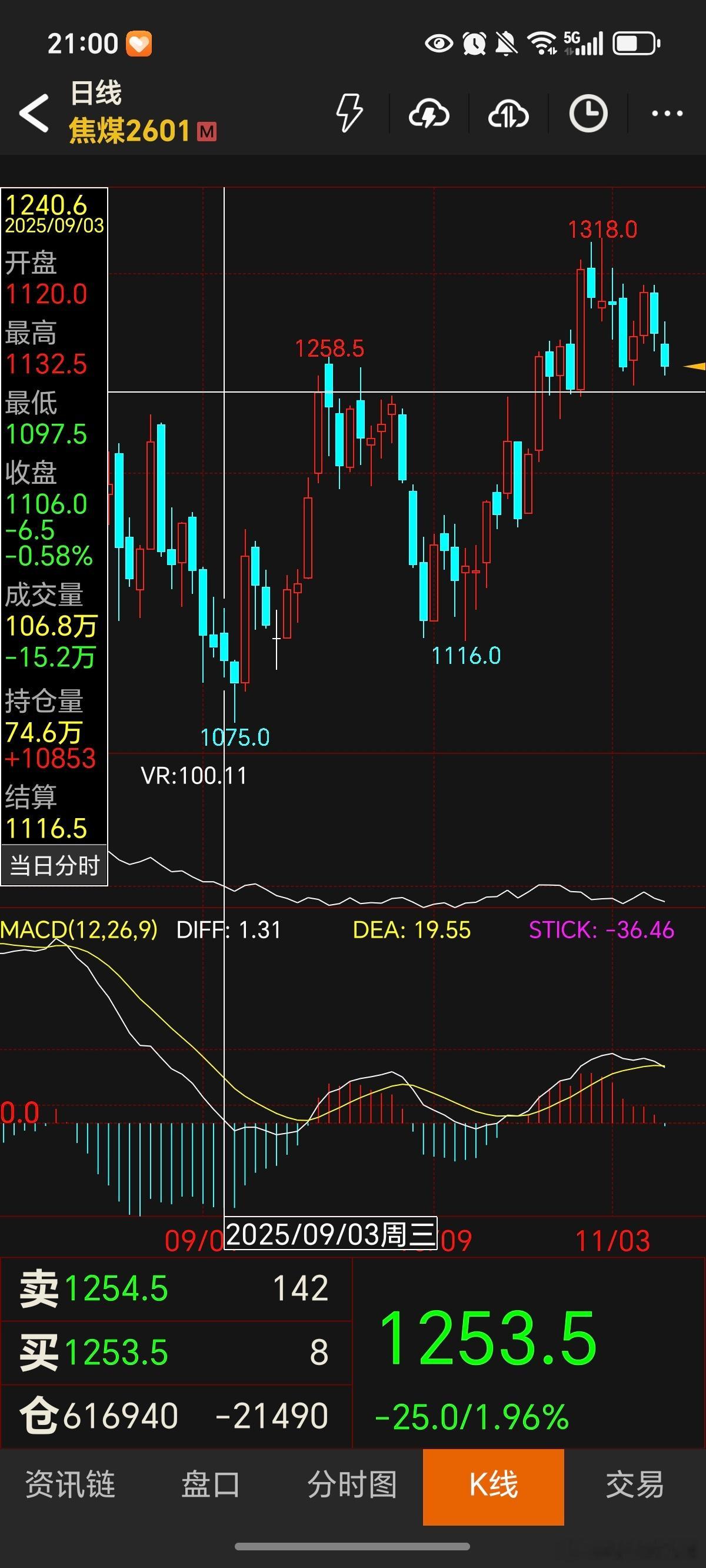 期货 焦煤不管是小时图还是日图,目前都面临比较大的回调风险!