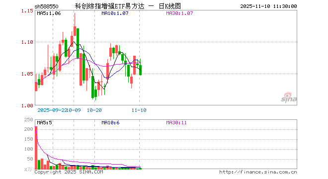 科创综指增强ETF易方达(588550)业绩比较基准为上证科创板综合指数收益率,管理人为易方达基金管理有限公司,基金经理为殷明,成立(2025-08-27)以来回报为6.42%,近一个月回报为-4.06%。