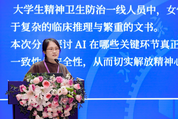 北京交通大学医院临床心理科主任、北京市海淀区高校心理健康服务联盟指导专家谢兴伟医师和大家分享了“让AI替我们省力、避坑:解放精神心理专业女性的生产力”的主旨报告。她结合自身参与大学生精神防治工作的经验,介绍了AI在心理健康领域的应用探索,并指出AI应在该领域进一步发展情感捕捉能力。
