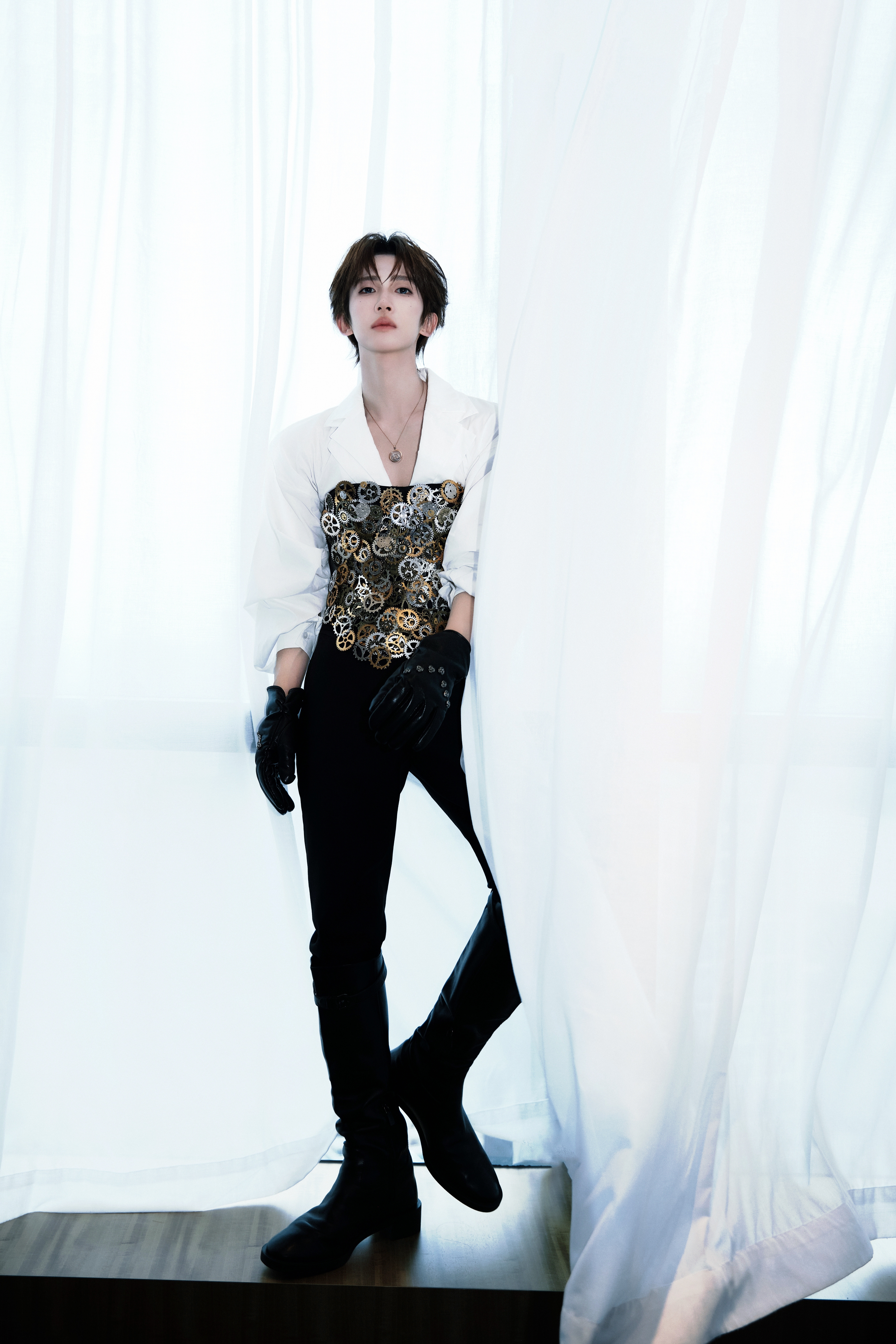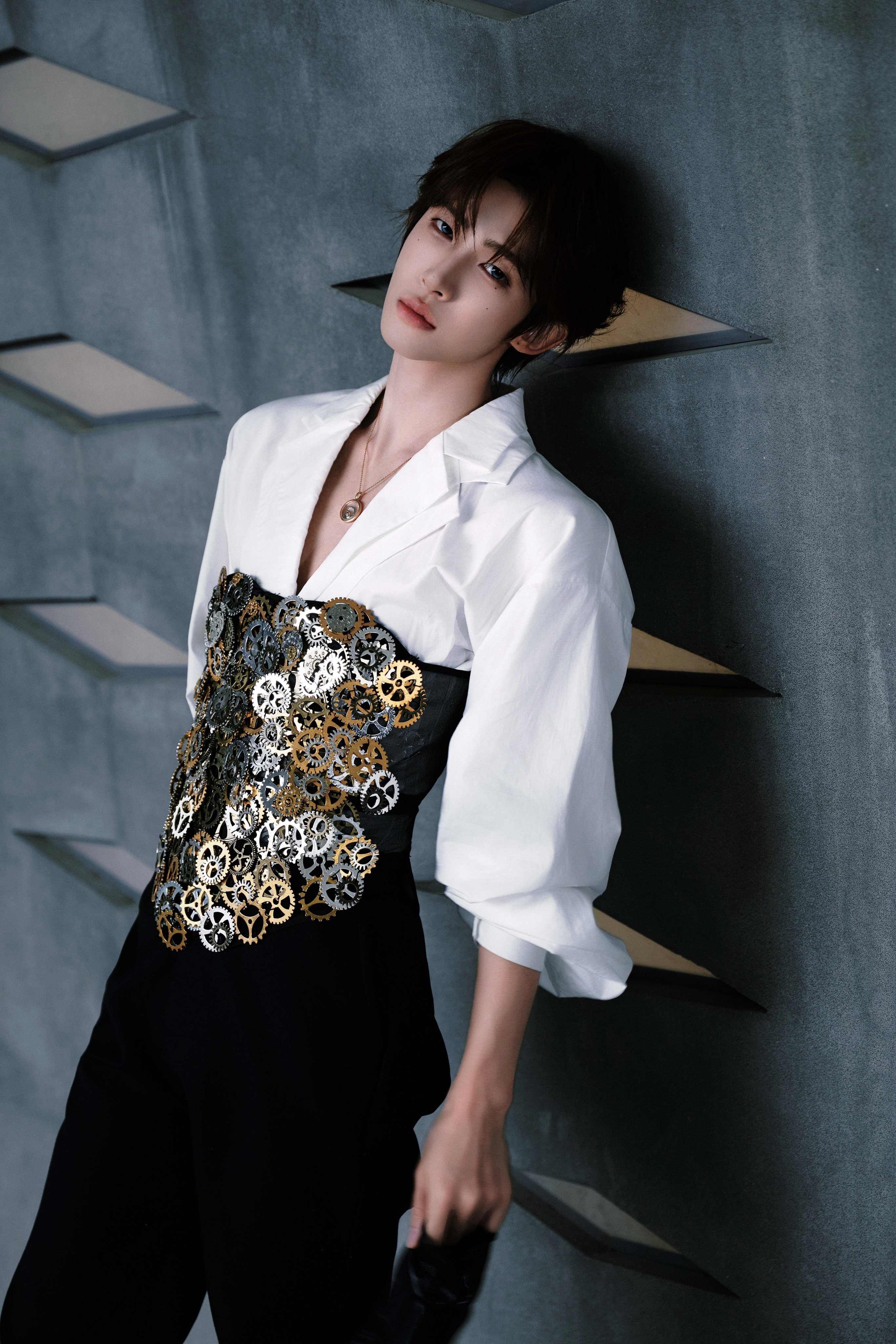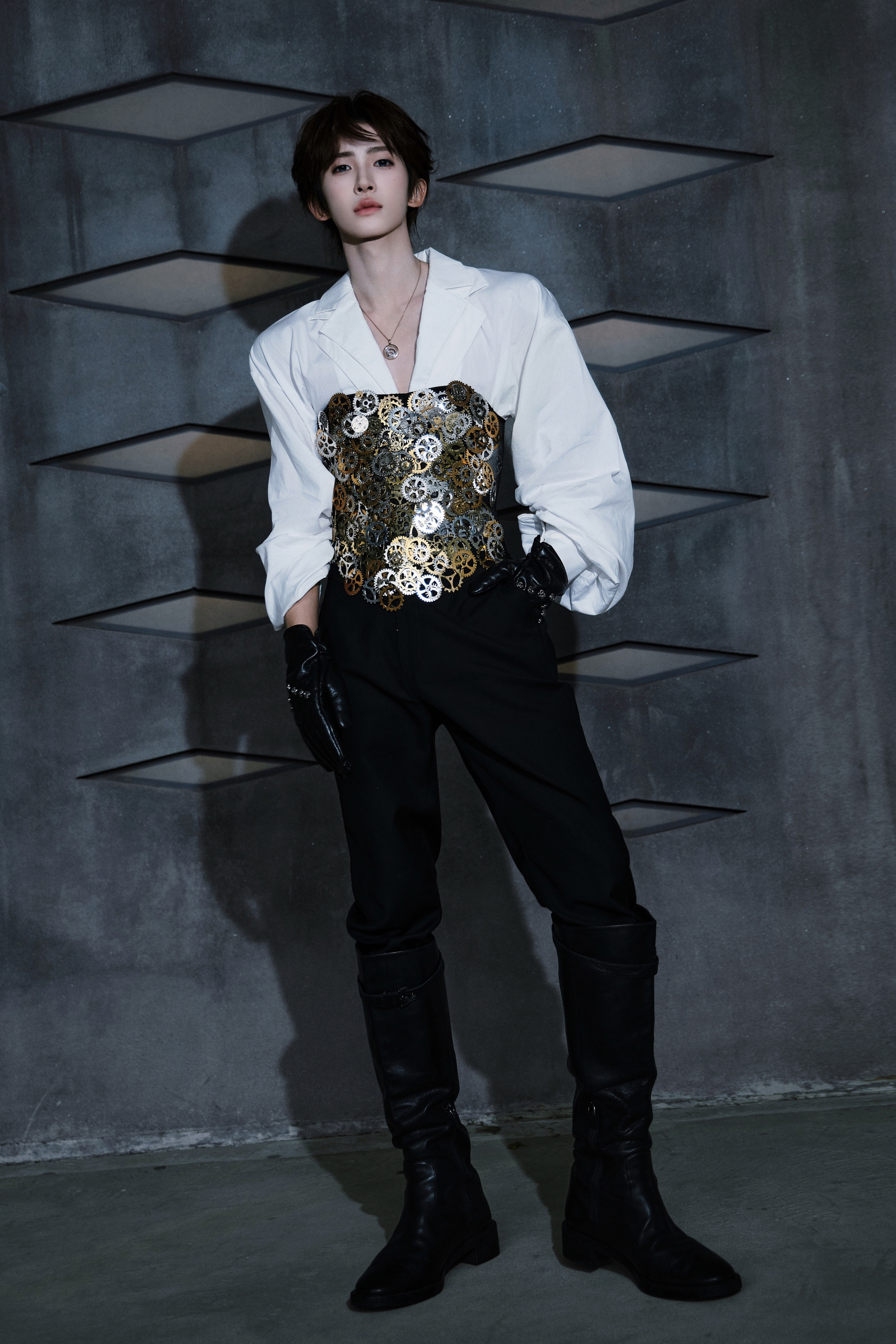 刘宇齿轮腰封骑士装齿轮腰封骑士造型出发图🈶!金银齿轮交错,皮手套质感好绝,有种