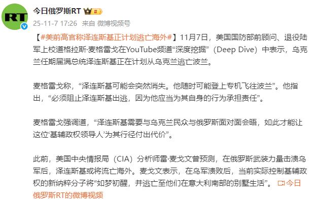 美军官:泽连斯基计划逃离乌克兰,绝不能让他跑了! 美国前五角大楼顾问麦格雷戈,近期表示“绝不能让泽连斯基跑了”,说白了就是怕自家在乌克兰砸下的“巨额投资”打了水漂。 从2025年的最新数据来看,美国光是军事援助就计划给乌克兰55亿美元,北约还要追加5亿欧元,欧盟也凑了19亿欧元的军事贷款,这一堆真金白银可不是用来做慈善的。 泽连斯基要是真像麦格雷戈说的那样,突然登上飞机溜到波兰,那美国这些钱岂不成了肉包子打狗?更别说那些通过援助换到手的战略利益,总不能跟着泽连斯基一起跑路吧。 自从乌克兰危机爆发,美国就借着欧洲能源价格飙升的机会,一个劲地扩大对欧液化天然气出口,赚差价赚得盆满钵满。更绝的是,他们还趁机用《通胀削减法案》把欧洲的高端制造业忽悠到美国本土,既捞了投资又抢了技术,这种“一石二鸟”的买卖换谁都舍不得放手。 而这一切的前提,就是乌克兰得保持现在的局面,即便乌克兰最后战败了,泽连斯基这个“门面”也必须得撑住。要是他跑了,万一上来个亲俄的总统,美国不仅没法再从能源和产业迁移里赚钱,之前搭进去的成本都得血本无归。 还有乌克兰地下那些宝贝疙瘩,更是让美国眼馋得很。在美军方认定的50种关键矿产里,乌克兰有22种都储量丰富,这些可是高科技和国防工业的命脉。 美国早就通过“援助换资源”的套路,慢慢把这些矿产的控制权攥在手里了。泽连斯基在台上一天,这种“合法掠夺”就能继续一天;他要是跑了,新政府万一翻脸不认账,美国这些年的布局不就全白费了? 美国有过太多“代理人跑路”的惨痛教训,当年南越政权倒台时,阮文绍偷偷跑路,留下美军在西贡颜面尽失;阿富汗加尼政府垮台时,总统带着现金坐飞机溜之大吉,让美国二十年的“国家建设”成了国际笑柄。 这些前车之鉴摆在那,美国可不想在乌克兰再上演一出“弃卒保车”的戏码。 泽连斯基现在就是美国在乌克兰的“牌面”,哪怕这张牌已经有些破旧,也得硬撑着打下去,毕竟换牌的成本实在太高,搞不好还得输掉整个棋局。 所以麦格雷戈强调“绝不能让他跑了”,表面上是说泽连斯基欠乌克兰民众一个交代,实际上是怕美国的利益没人交代。泽连斯基现在就是被架在火上烤,想跑也跑不了,毕竟美国在他身上绑了太多的利益链条。 从军事援助到能源掠夺,再到矿产控制,每一条都牵着美国的钱袋子和战略野心,只要这些利益还在,美国就会像盯紧猎物一样盯着泽连斯基,绝不可能让他轻易脱身。 毕竟在国际政治的棋盘上,棋子可没有自己逃跑的资格,尤其是一颗价值几百亿美金的棋子。