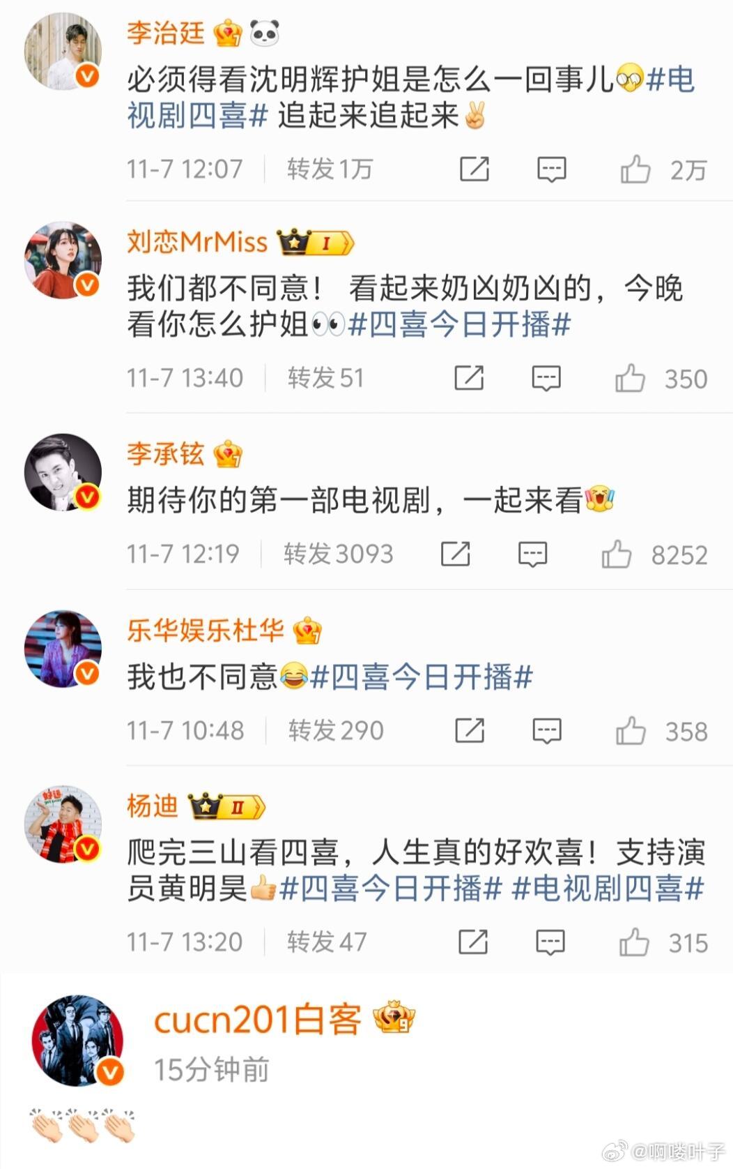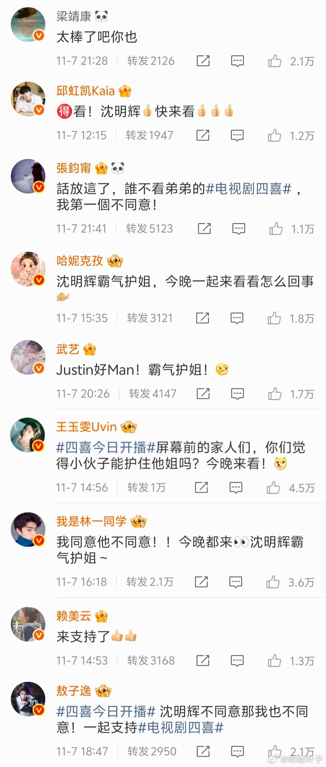 哥哥姐姐弟弟都来啦宣传阵容很豪华了,小四喜所有人都在期待你呀。(永远也猜不透黄明昊的朋友圈哈哈)排序没有先后,理到哪算哪,有些综艺一起的朋友就放一块了
