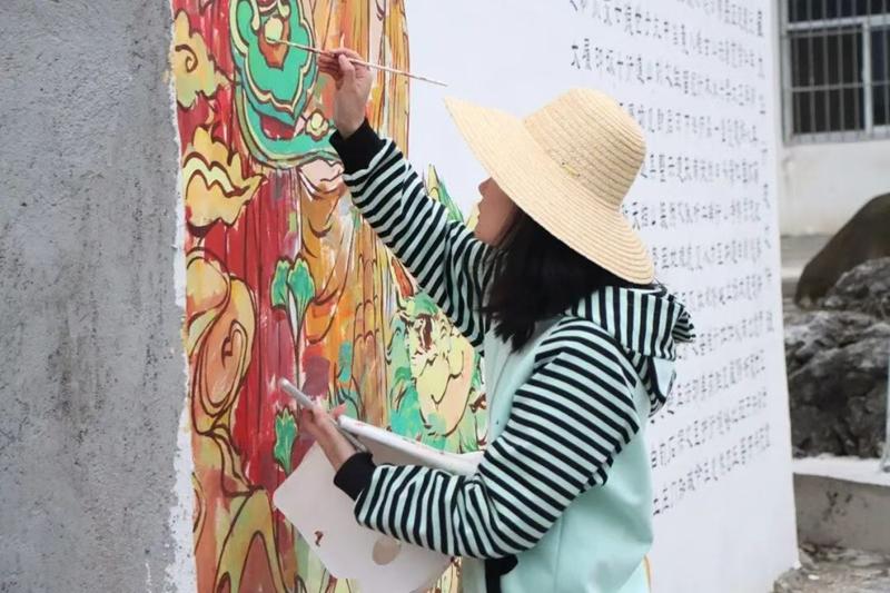 没想到,王康怡偶然间得知村里正在寻找“画手”,便主动请缨:“我从小就学画画,大学学的也是美术专业,村里搞建设我理所当然要出一份力,做墙绘没问题。”