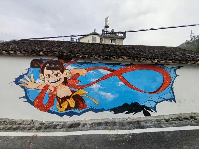 村民丁荣发每天路过都要驻足良久,从最初的好奇到看见笔下的墙绘慢慢成形,他不禁感慨:“这画一上墙,感觉村子都‘年轻’了几岁,村子的未来是属于这些年轻人的。”