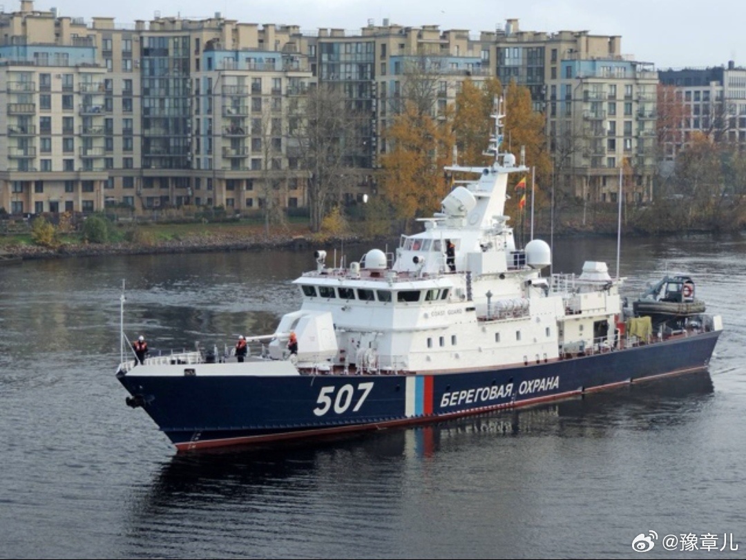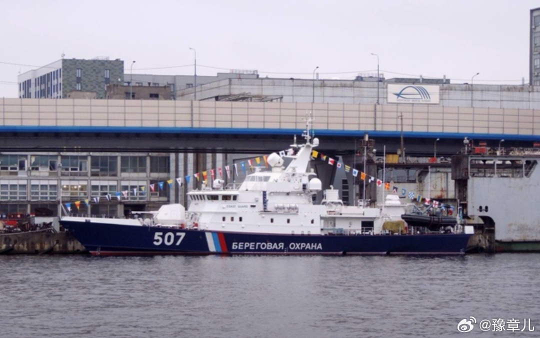 在俄罗斯联邦安全局海岸警卫队的 10410 级新边境巡逻舰上,升起了旗帜。
