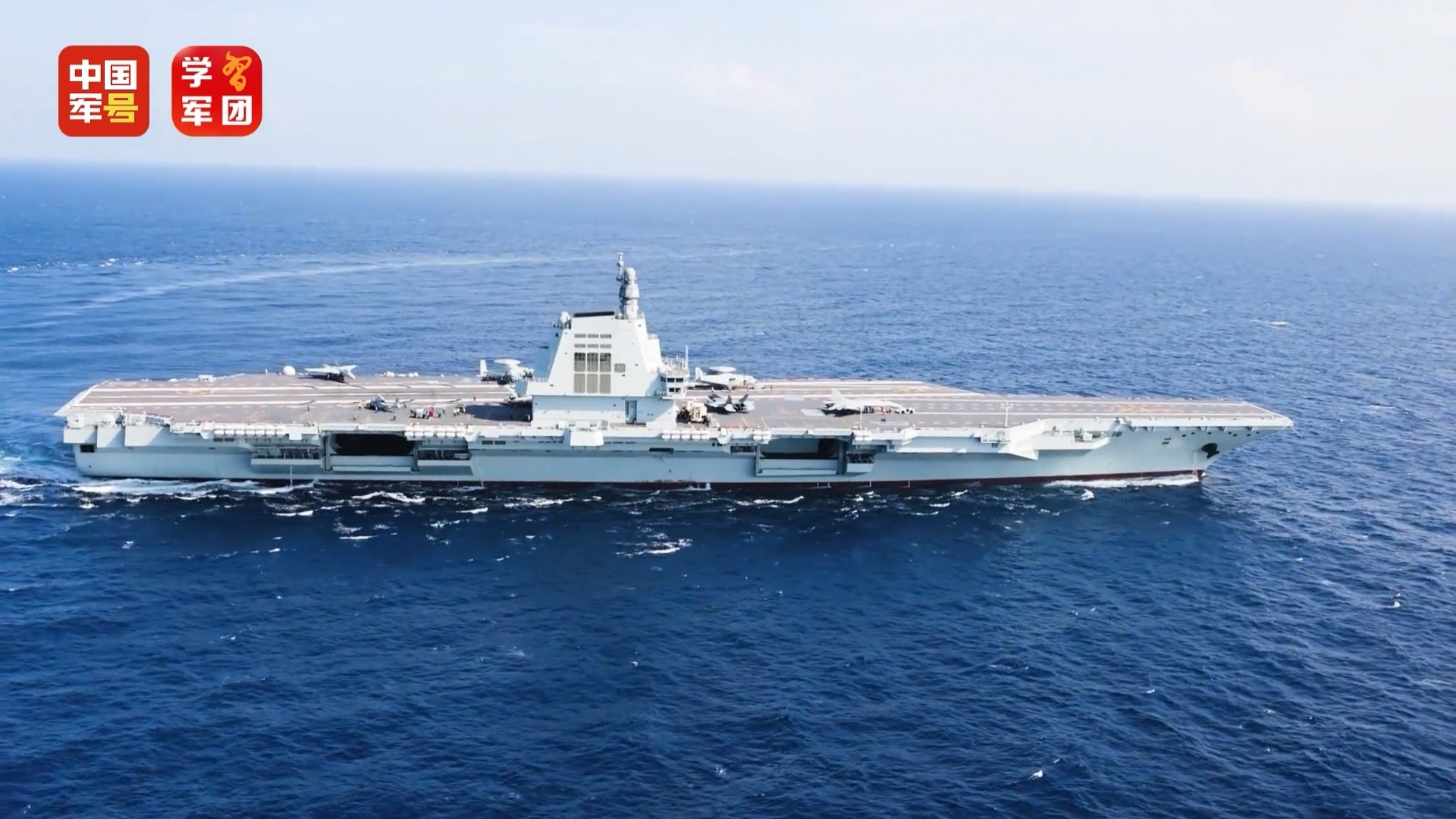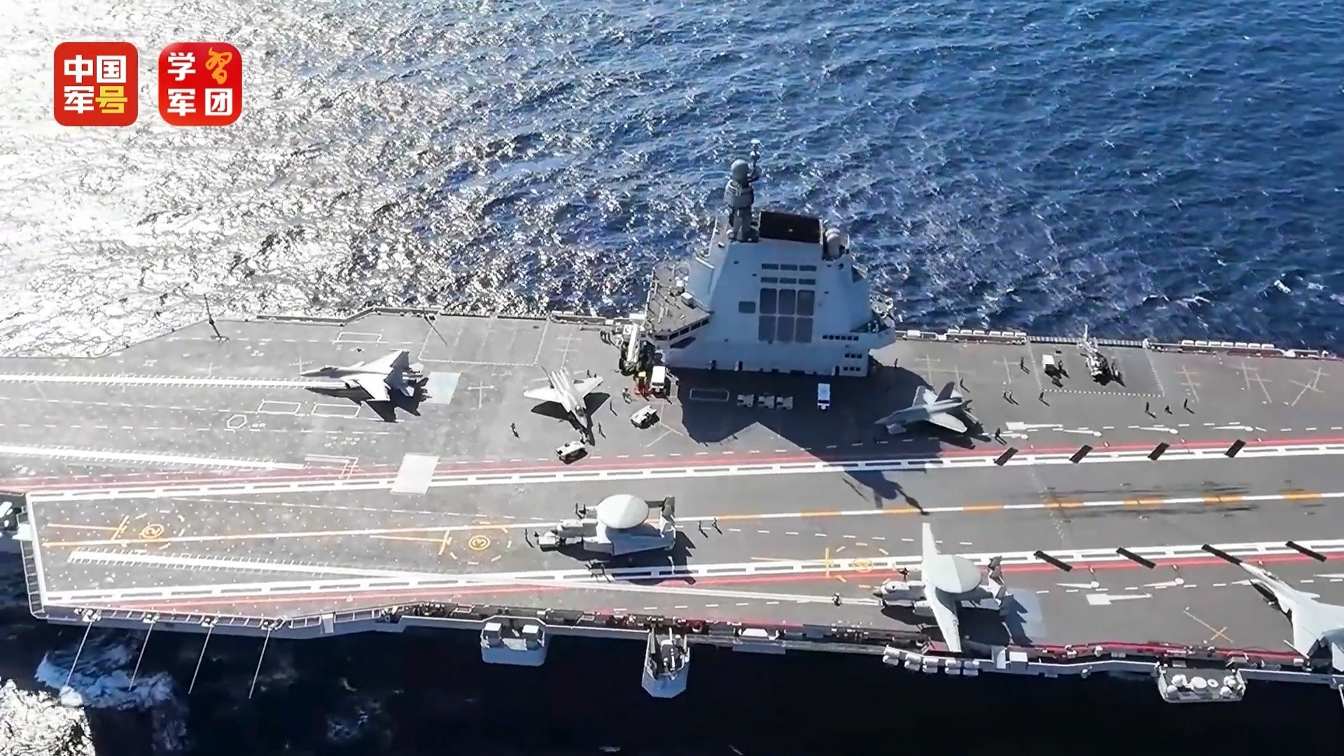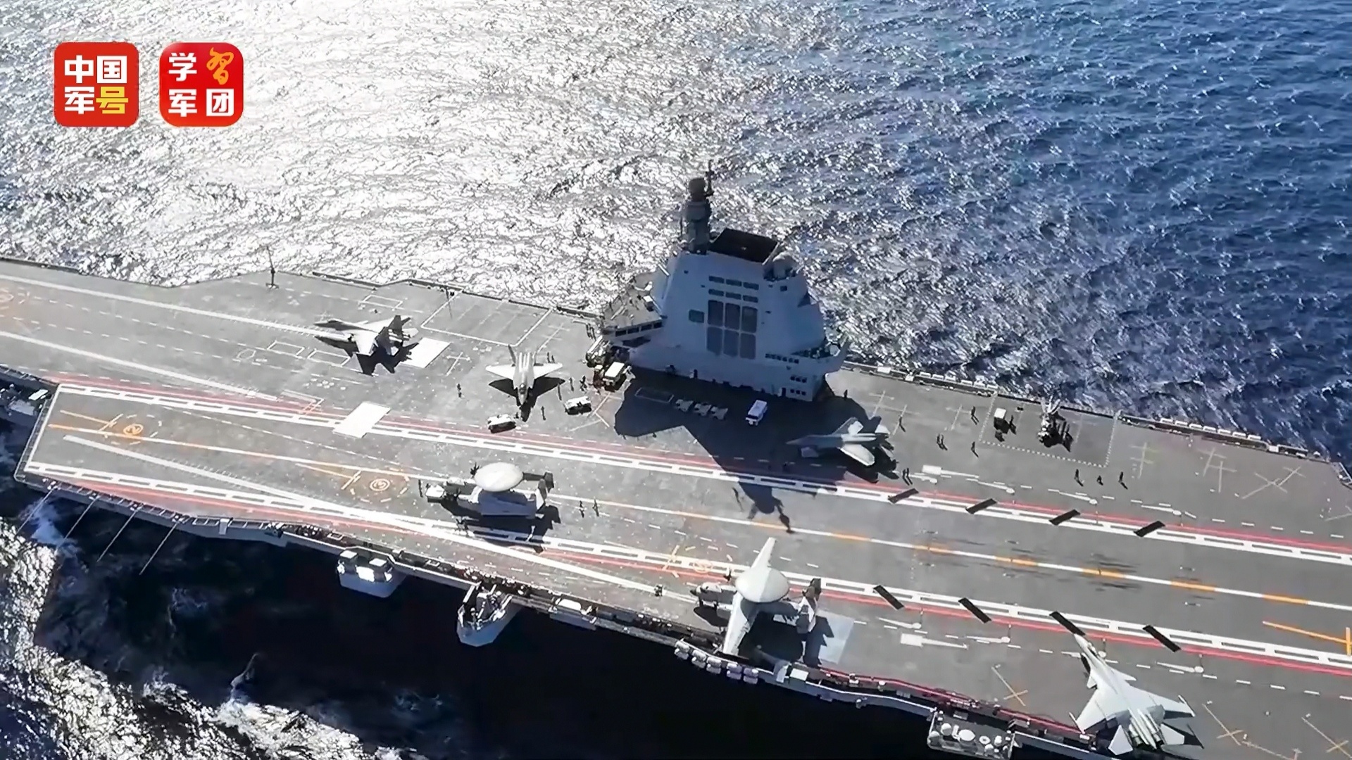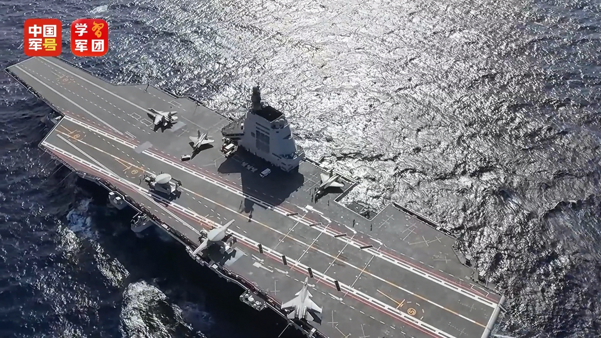 再次看看福建号航母俯拍航拍下的全景镜头~大平板一如既往的帅!舰载机一览无余~空警