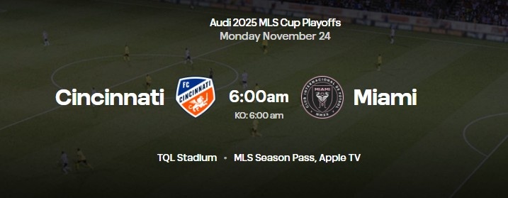 官方:辛辛那提vs迈阿密国际将在11月24日周一早晨6点进行