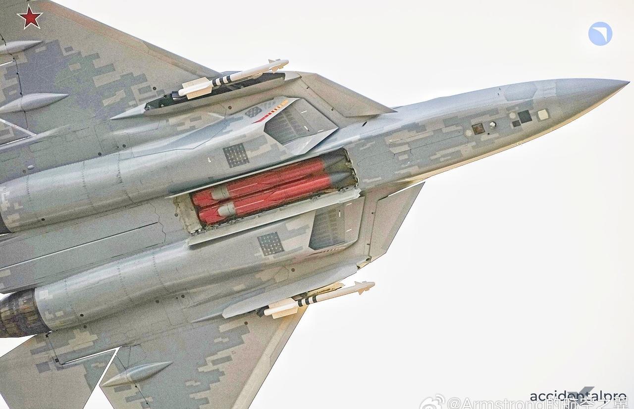不容易啊,大俄的苏-57战机首次公布了自己的主副弹舱同时开启后的状态![墨镜]