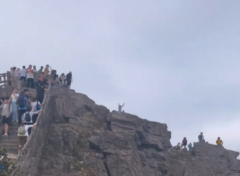在另一位网友拍摄的视频中,疑似还有多位游客翻出护栏外进行拍照打卡。