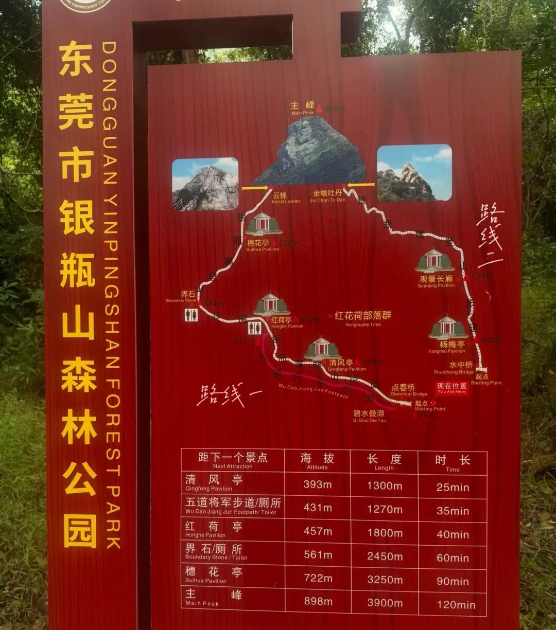 据了解,银瓶山位于广东省东莞市谢岗镇,是东莞第一高峰,海拔898米。银瓶山森林公园为免费景区,是非常受欢迎的自驾徒步目的地。